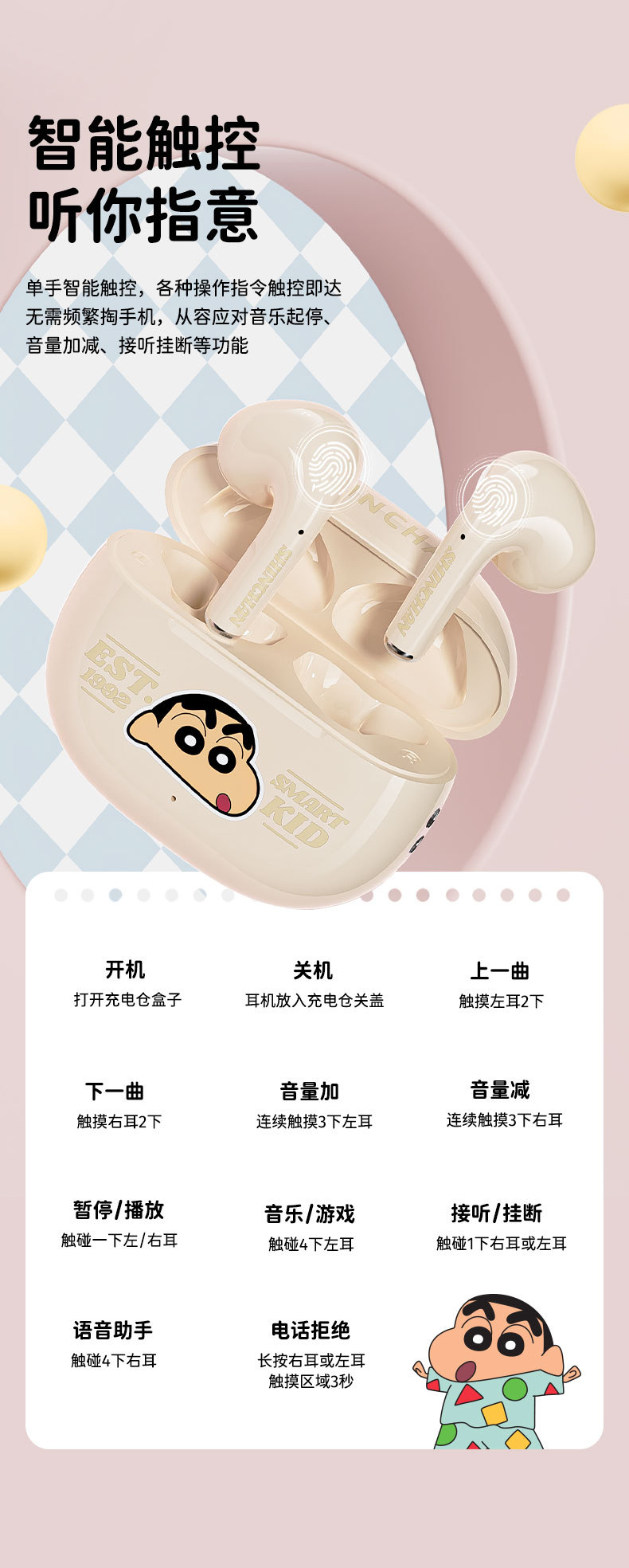 크레용 신 EB600 반귀 긴 내구성 ENC 통화 소음 감소 긴 내구성 만화 TWS 블루투스 헤드셋
