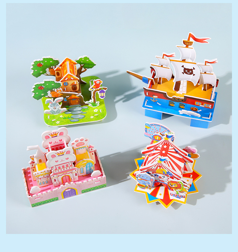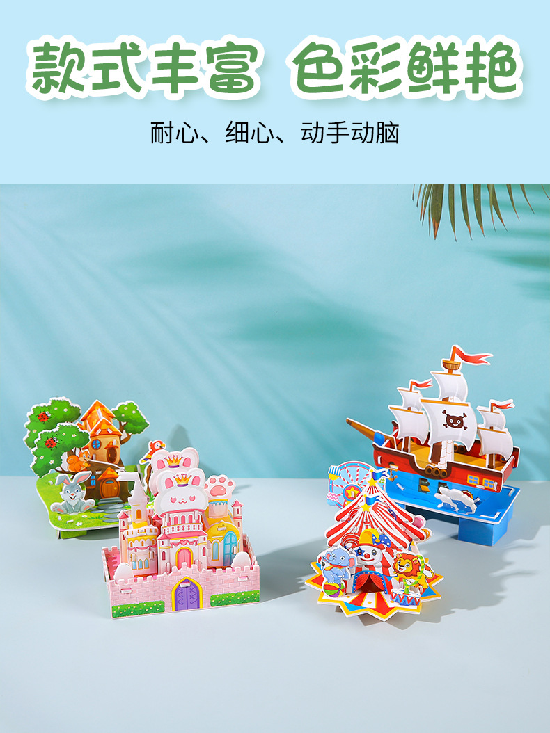 어린이 퍼즐 3 차원 종이 만화 부모-자식 대화 형 DIY 창조적 인 건물 모델 장식품 퍼즐 장난감 도매