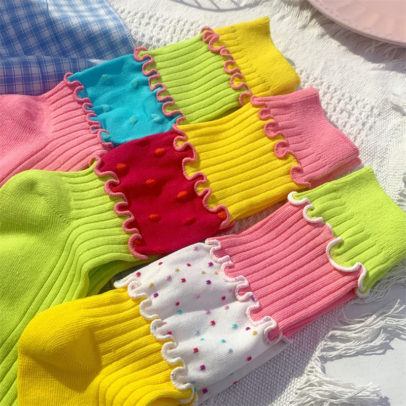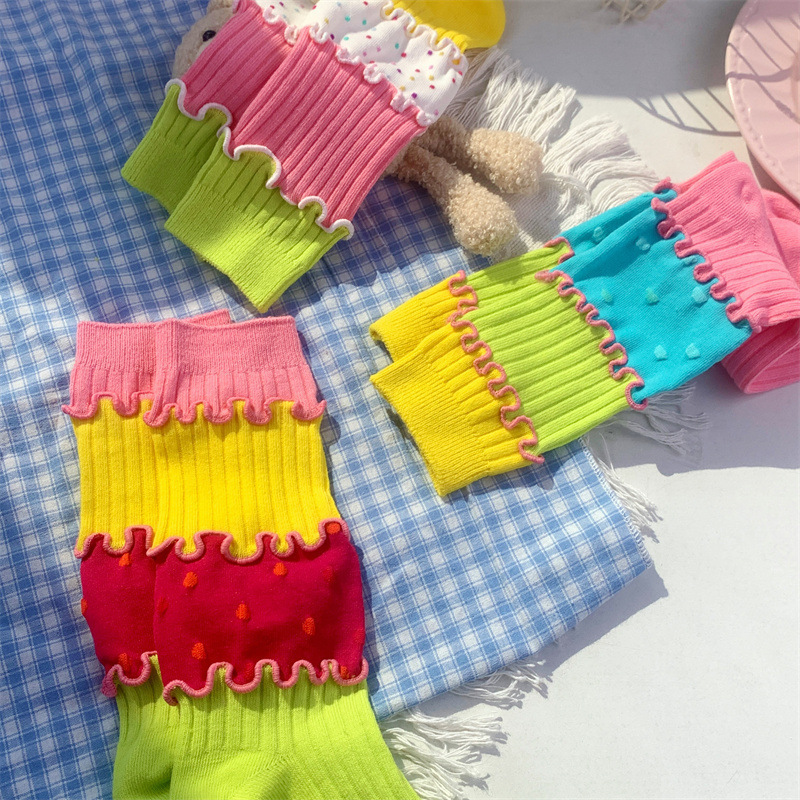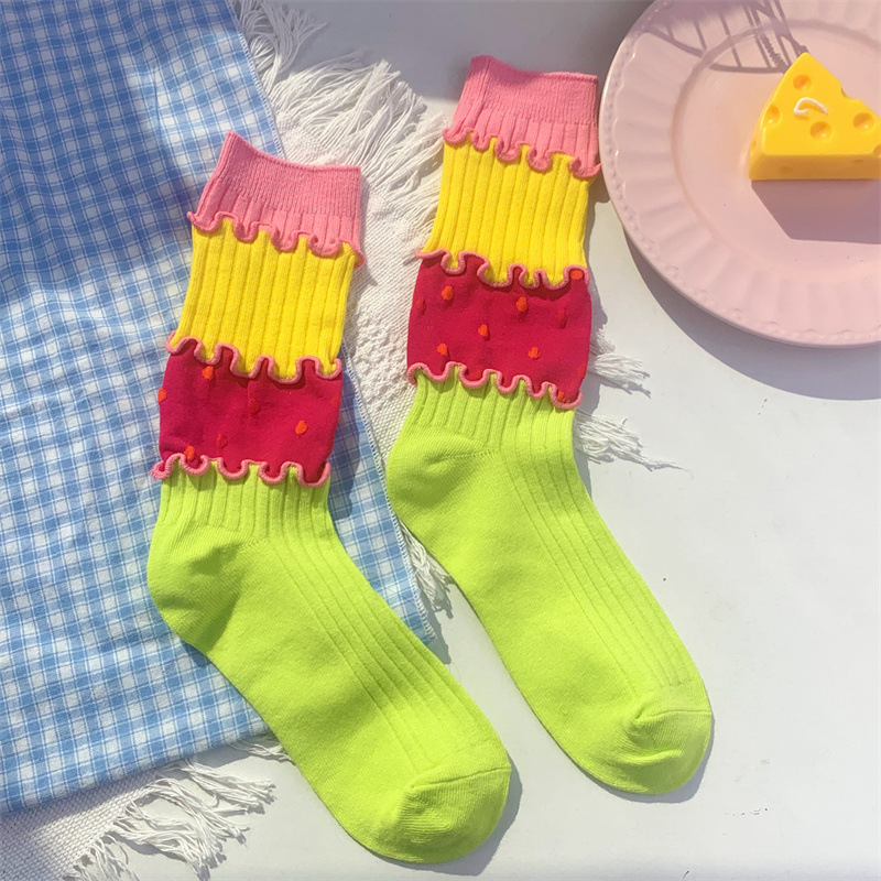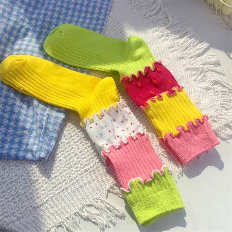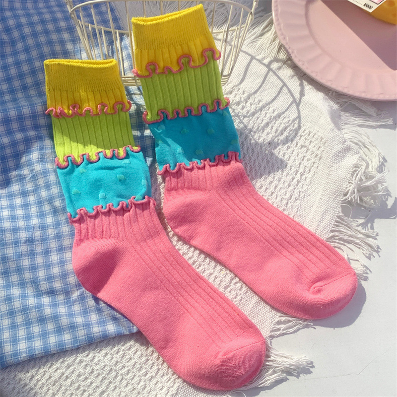 도파민 컬러 패치워크 양말, 일본풍 스트리트 스타일 땀 흡수 양말, 인터넷 인기 귀엽고 독창적인 중목 양말, 여성용 컬러풀 양말스토어 가기