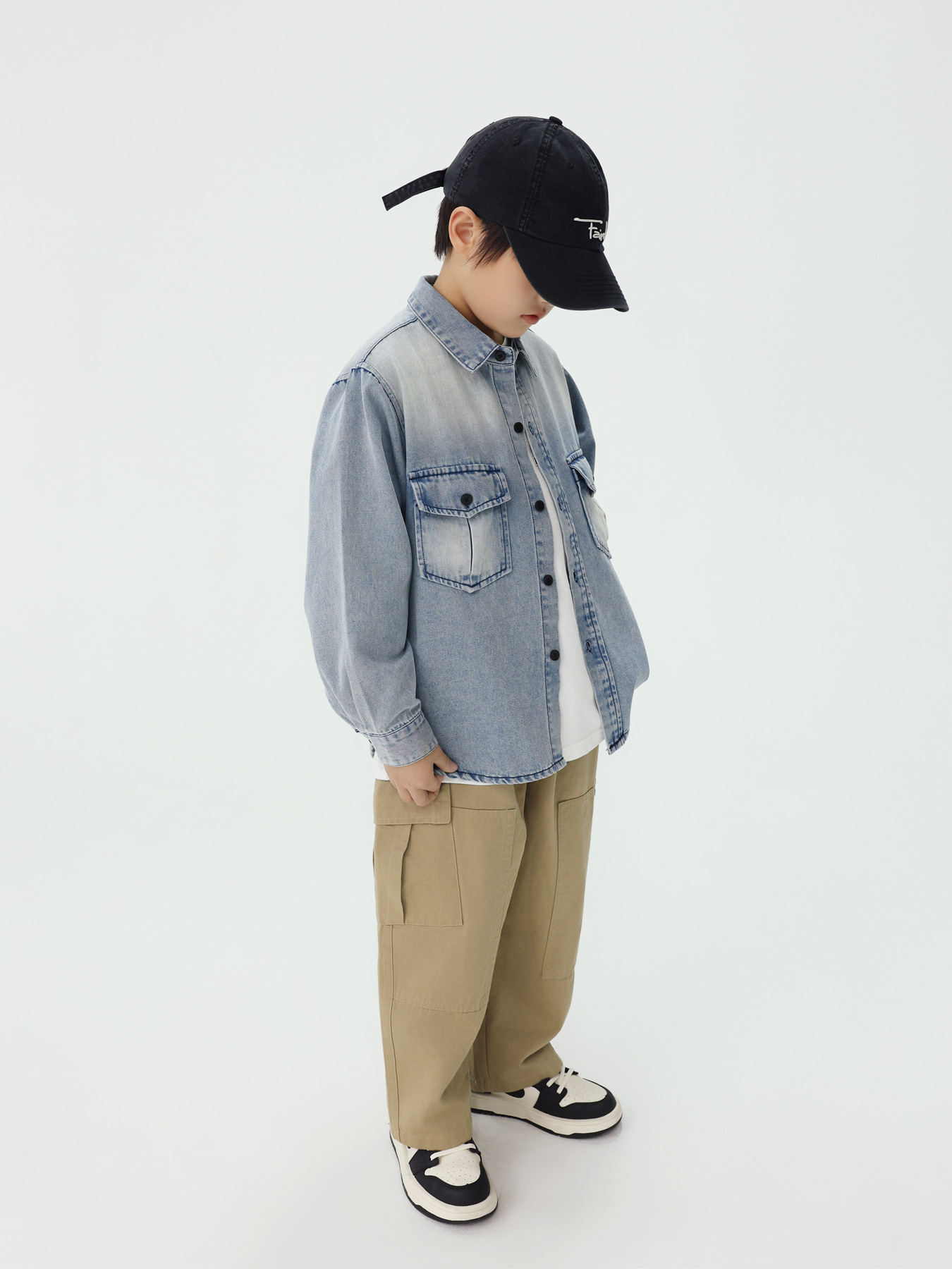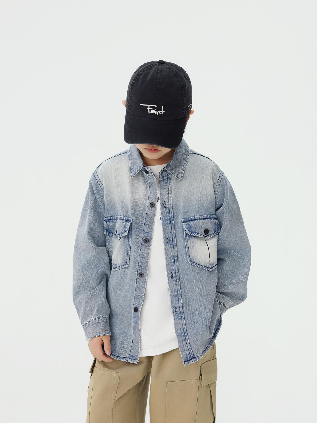 2025 봄 아동복 새 스타일 소년 스타일 데님 셔츠 아동 캐주얼 긴팔 중대형 아동 데님 재킷 유행스토어 가기