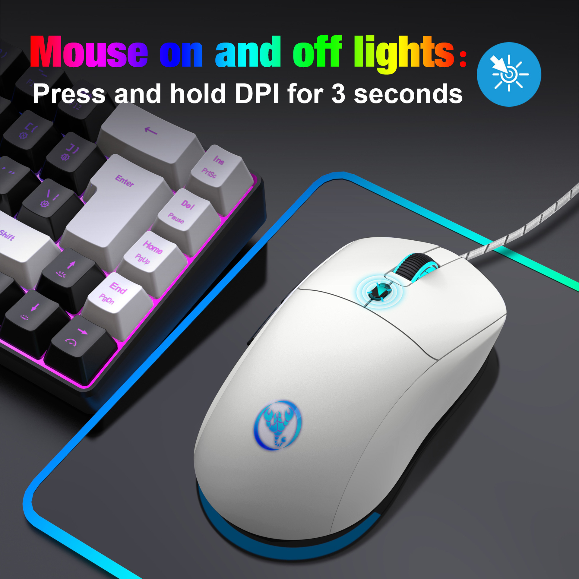 Turn on and off lights: Hold down DPI-3 seconds