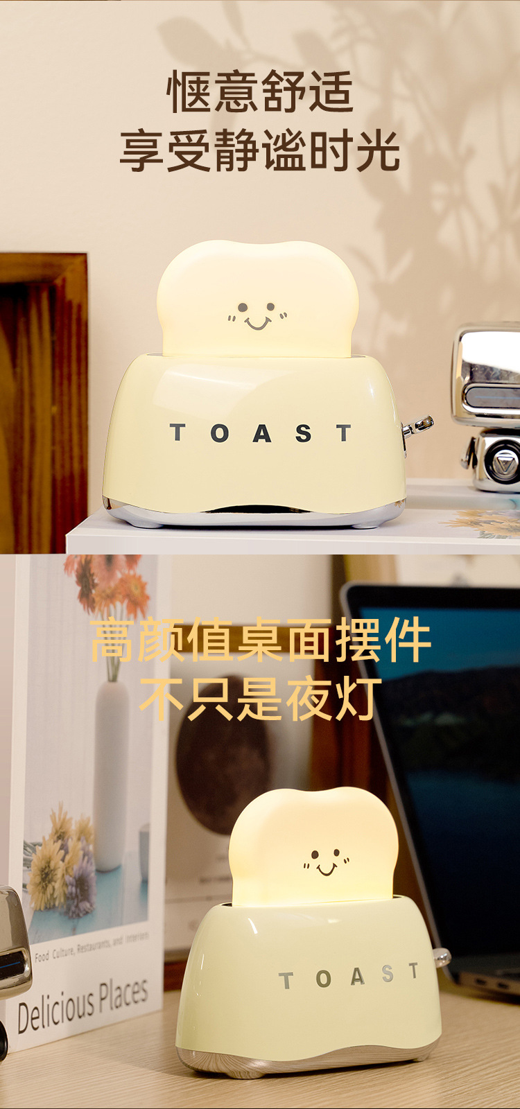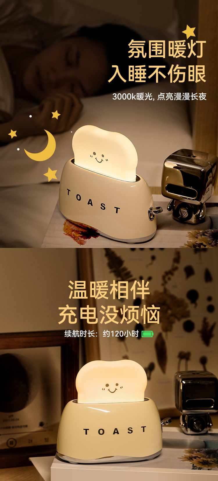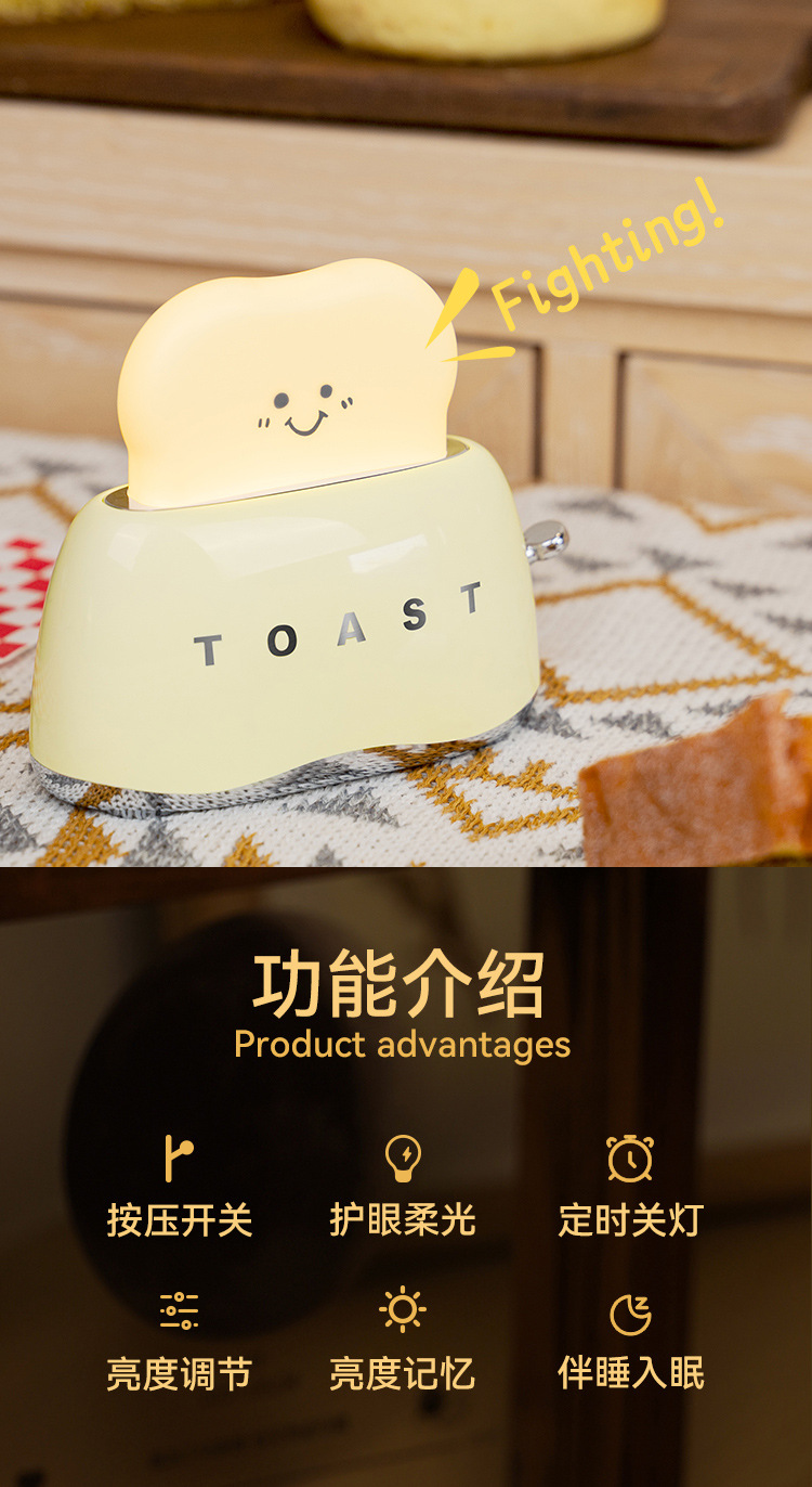 功能:暖光夜灯+无极调光+后背可视定时拨动开关+30/60分钟定时关灯功能+烫银工艺,高端上档次,大电量。