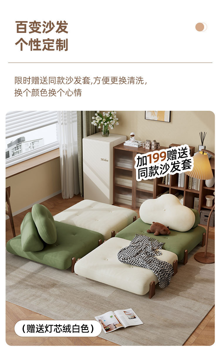 크림 스타일 두부 블록 돼지 다기능 소파 게으른 소파 다사미 접이식 단일 소파 침대스토어 가기