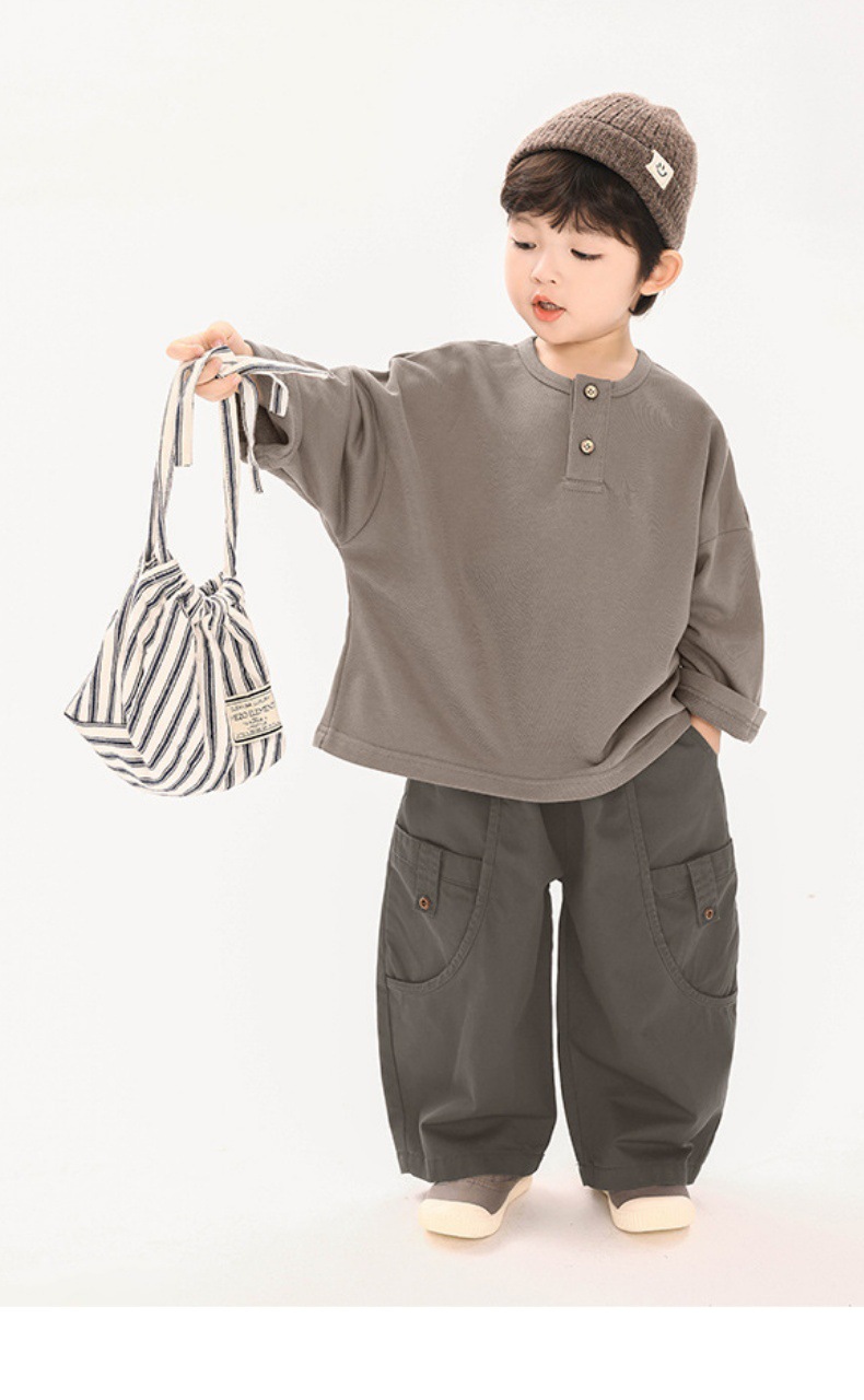 창궈 의류 남아 티셔츠 긴팔 봄옷 아동용 봄가을 풀오버 상의 중소형 아동용 한국 스타일 루즈핏 스웨트셔츠