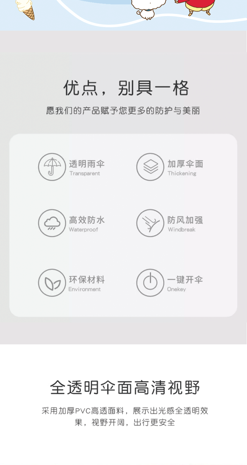 Zhi Yu Crayon 작은 새로운 투명 우산 긴 손잡이 우산 큰 두 배 여자의 귀여운 인터넷-인기 높은 가치 분위기 우산스토어 가기