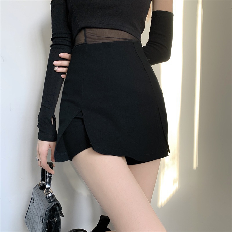 허리 가방 섹시한 달콤한 뜨거운 소녀 캐주얼 슈퍼 반바지 여름 반 길이 하이 스플릿 컬롯 여성 A 라인 스커트 힙스토어 가기