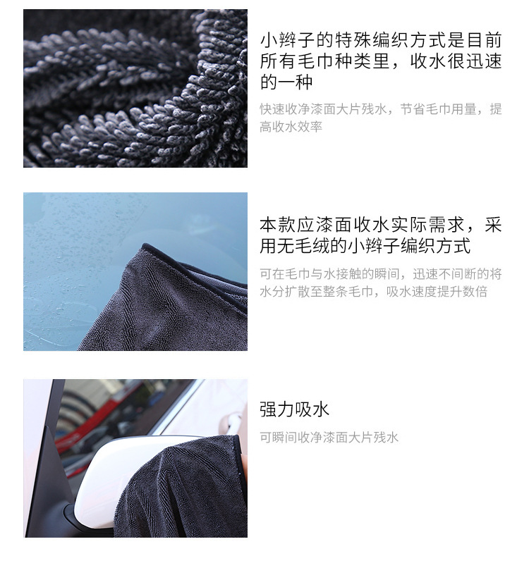 꼬인 끈형 수건, 물을 흡수하고 보풀이 없는 세차용 특수 천, 두꺼운 자동차 닦는 수건, 초극세사 자동차용