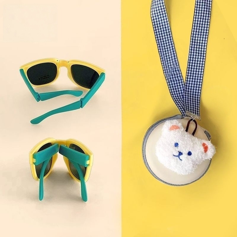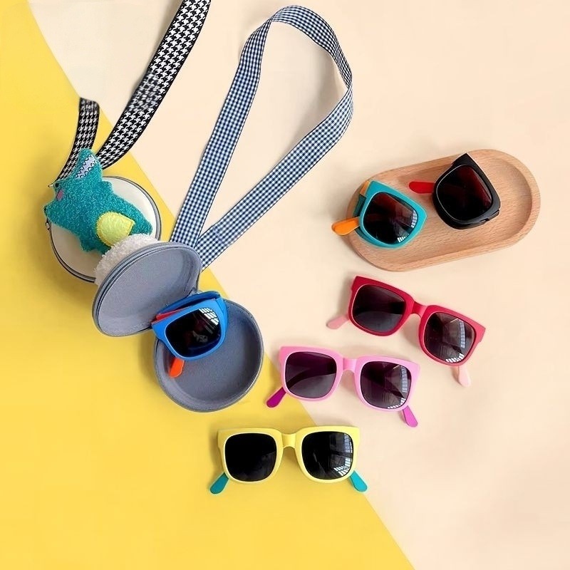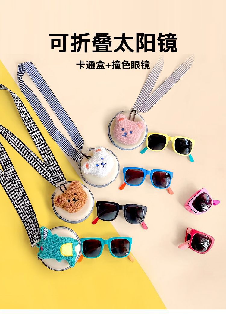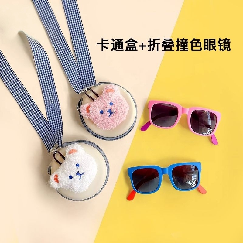 어린이 접는 선글라스 휴대용 교수형 목 상자 세트 한국 명암 아기 선스크린 선글라스 트렌디스토어 가기