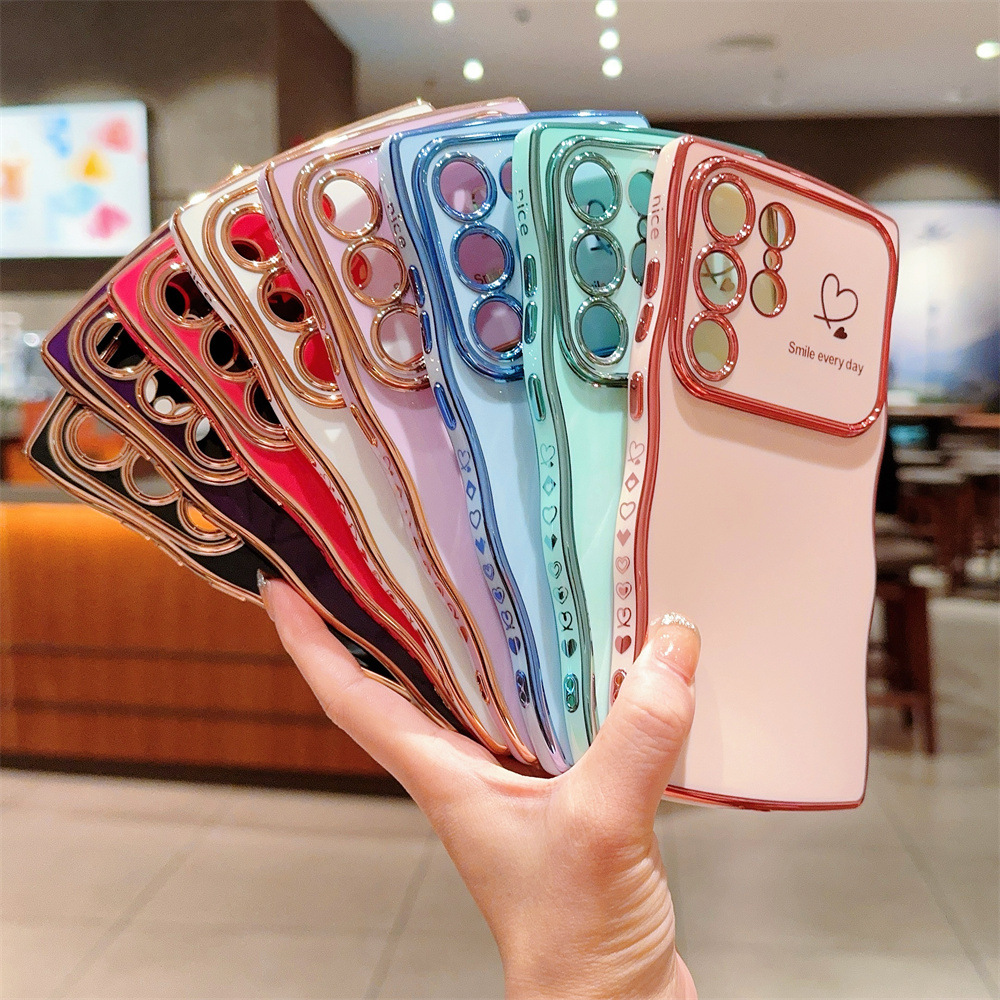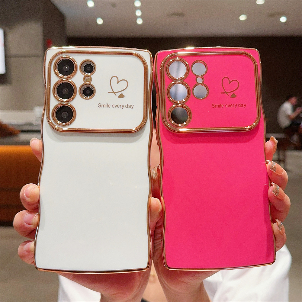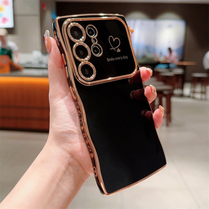 삼성 S26ULTRA 전기도금 대형 웨이브 휴대폰 케이스, S24FE 측면 하트 A56 낙하 방지 보호 케이스에 적합