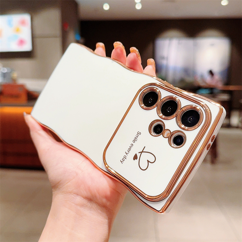 삼성 S26ULTRA 전기도금 대형 웨이브 휴대폰 케이스, S24FE 측면 하트 A56 낙하 방지 보호 케이스에 적합스토어 가기