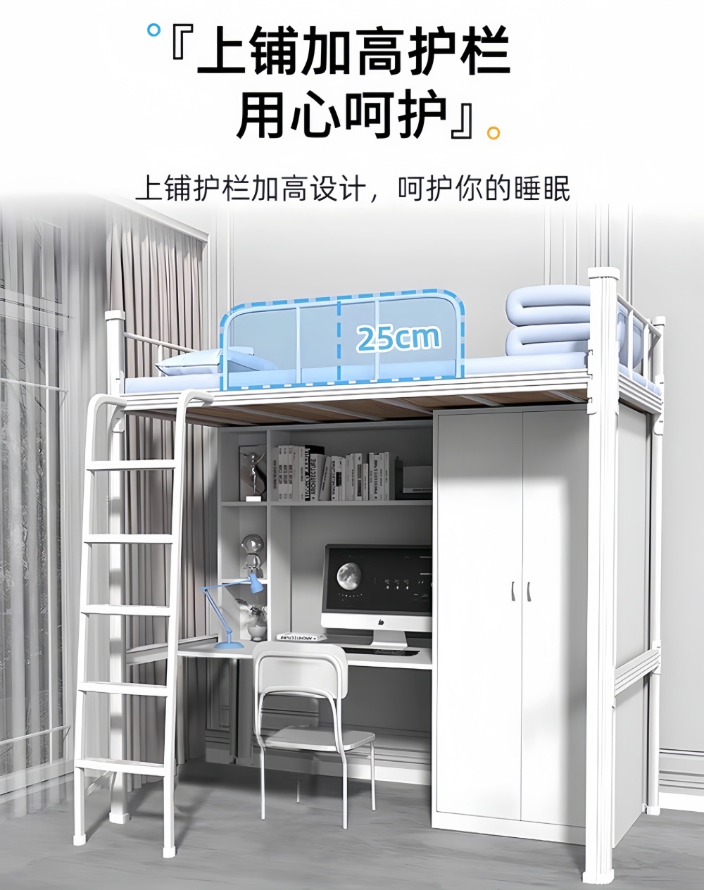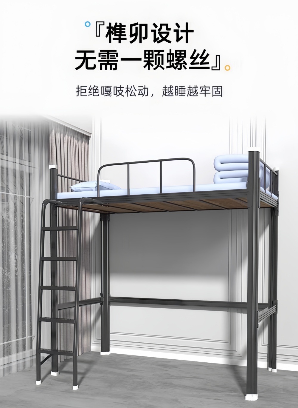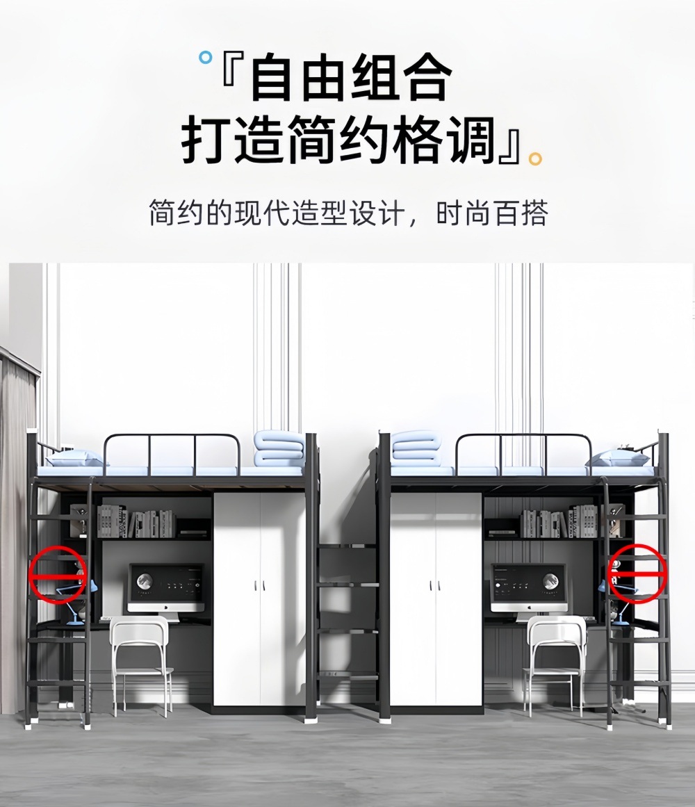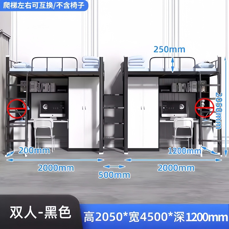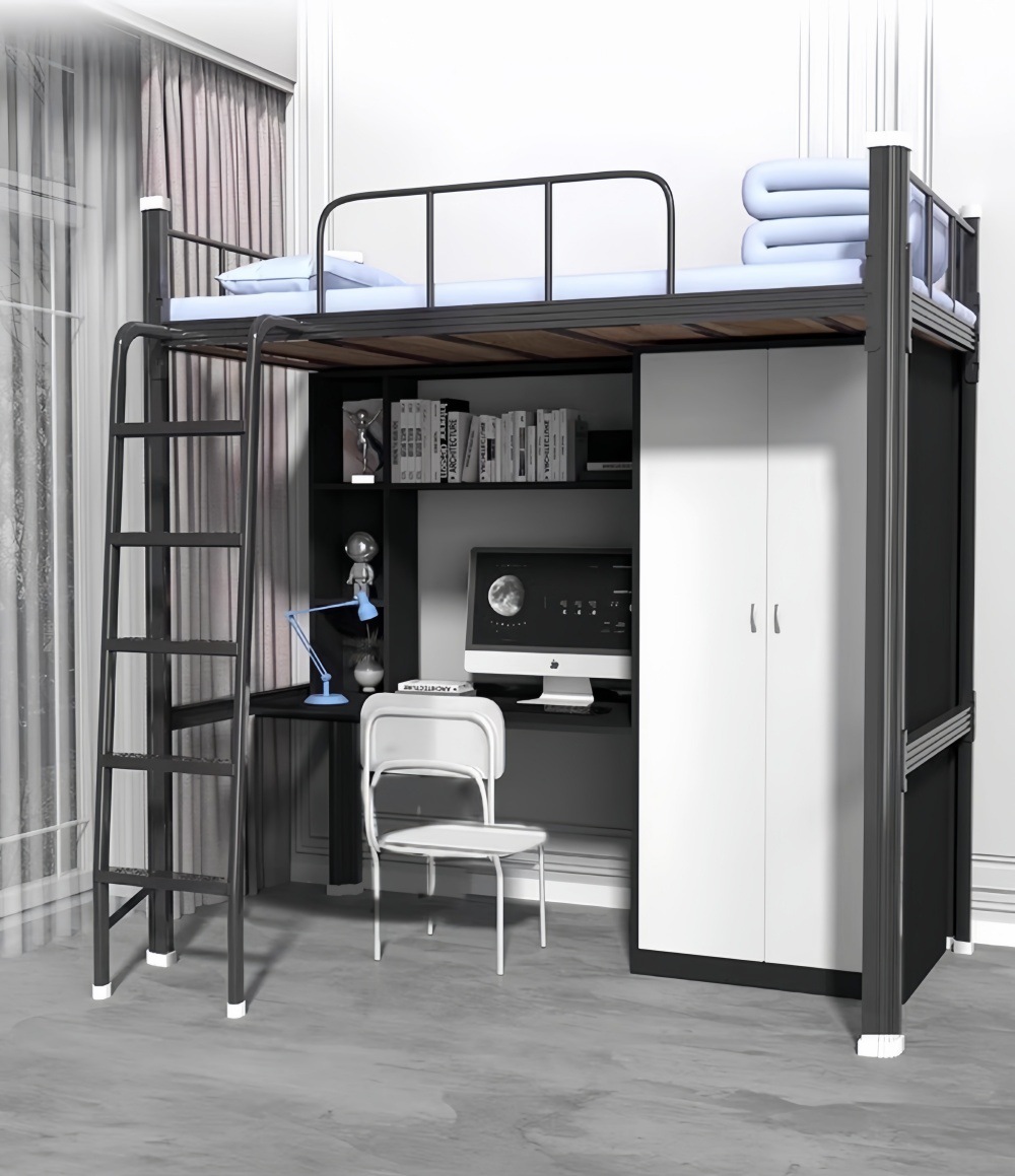 상하층 침대와 테이블, 의자 세트, 대학생 기숙사, 상층 침대, 하층 테이블, 교사 아파트, 소형 아파트, 철제 이층 침대, 중간 사다리