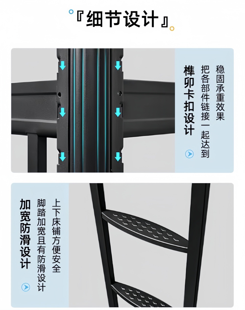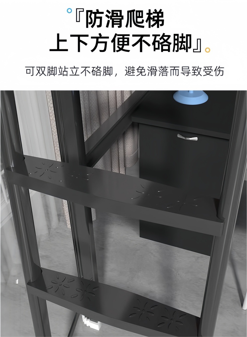 • 두꺼운 모델 - 1.2m 와이드 블랙 중간 사다리 더블 침대 및 테이블 모델