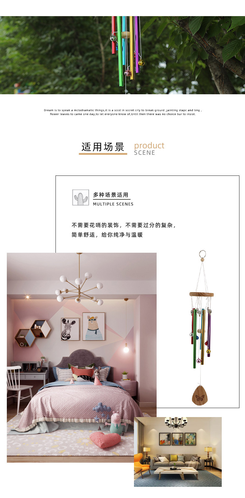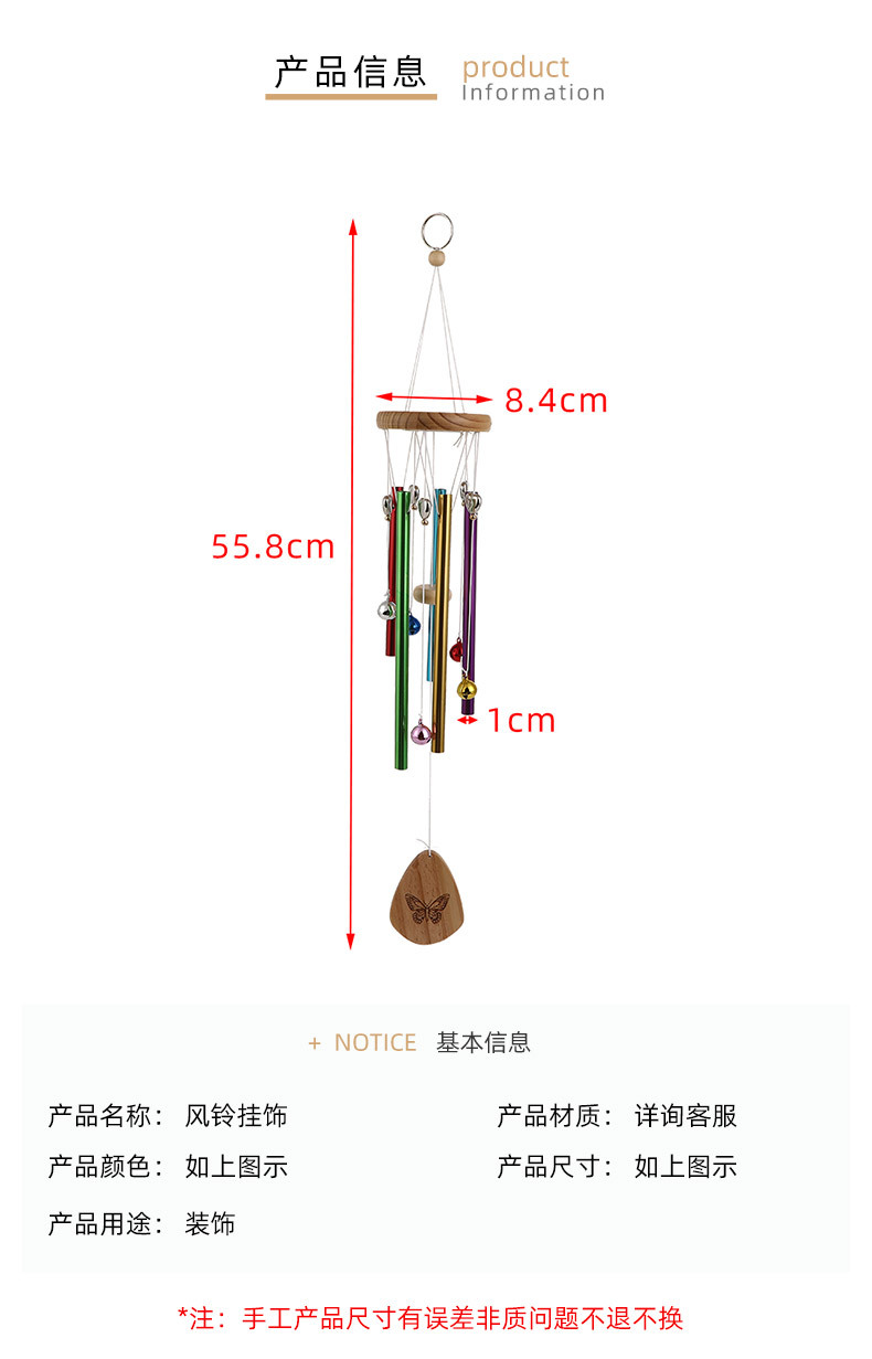 색상 창조적 인 6 튜브 금속 바람 차임 펜던트 안뜰 장식 창조적 인 휴일 선물 펜던트 바람 차임 공장 재고