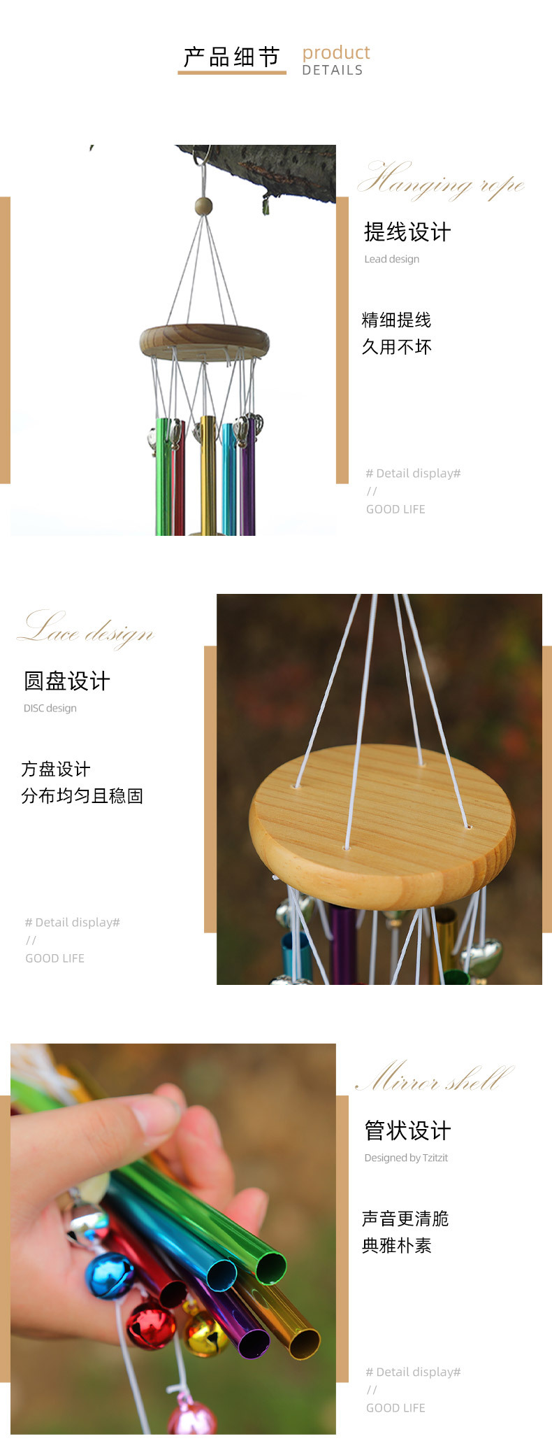 색상 창조적 인 6 튜브 금속 바람 차임 펜던트 안뜰 장식 창조적 인 휴일 선물 펜던트 바람 차임 공장 재고스토어 가기