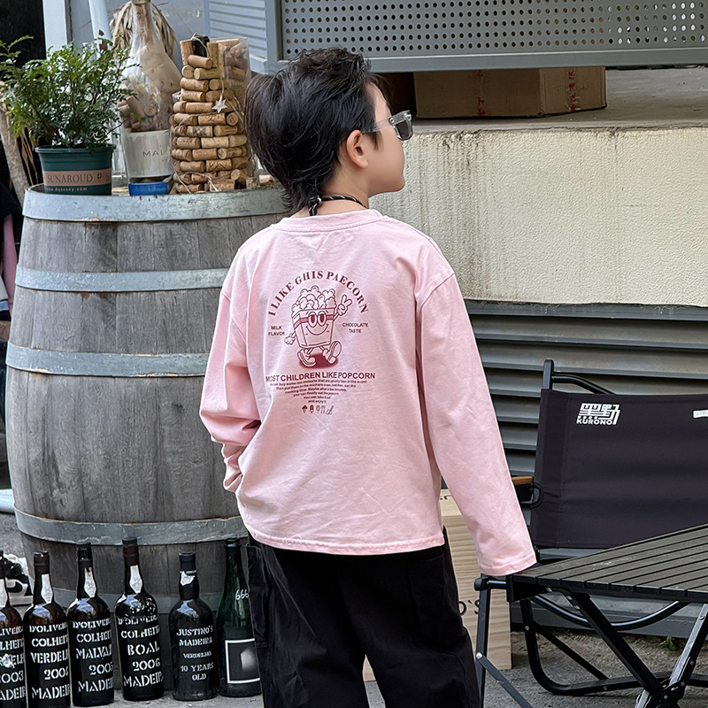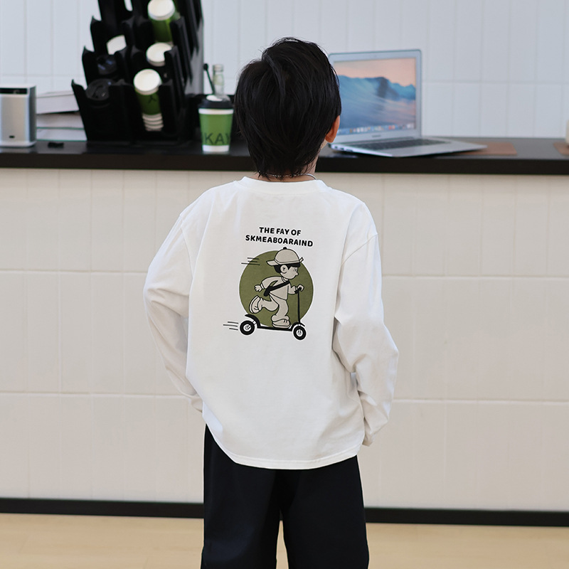 어린이 2024 가을 한국 면화 소녀 최고 가을 서양식 만화 인쇄 소년 긴 소매 티셔츠스토어 가기