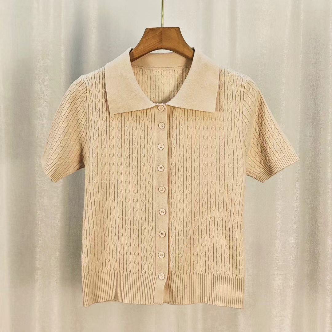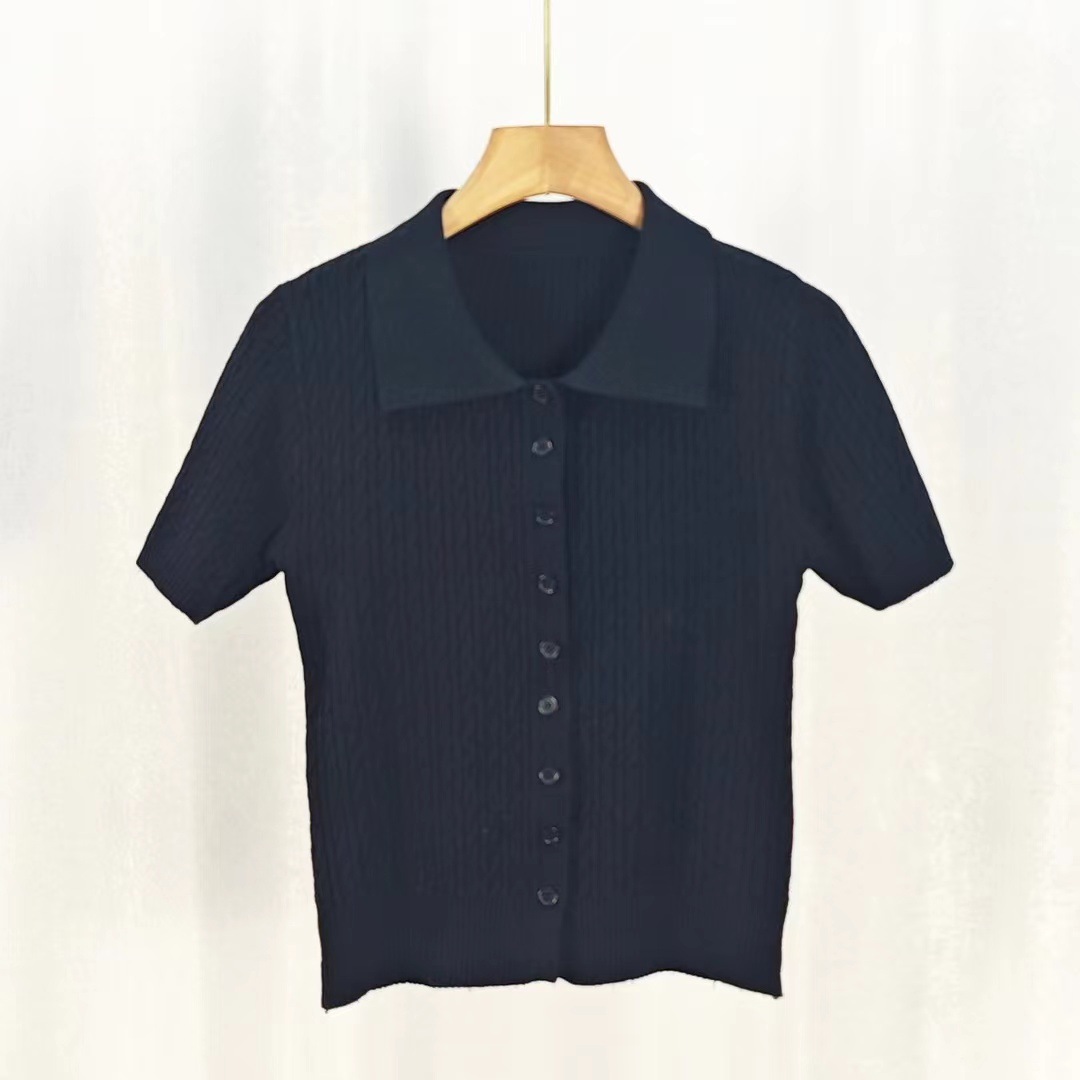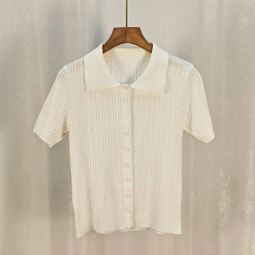 어깨 반팔 티셔츠 여성용 니트 여름 새로운 슬림 핏 Ins 스타일 올 매치 슬림 핏 유행 통근 옷깃 폴로 셔츠스토어 가기