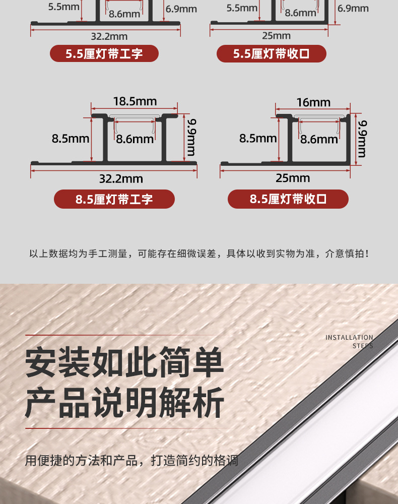 벽 패널 숨겨진 빛 L 자형 가장자리 스트립 TV 배경 벽 패널 발광 장식 스트립 알루미늄 합금 원숭이 스트립