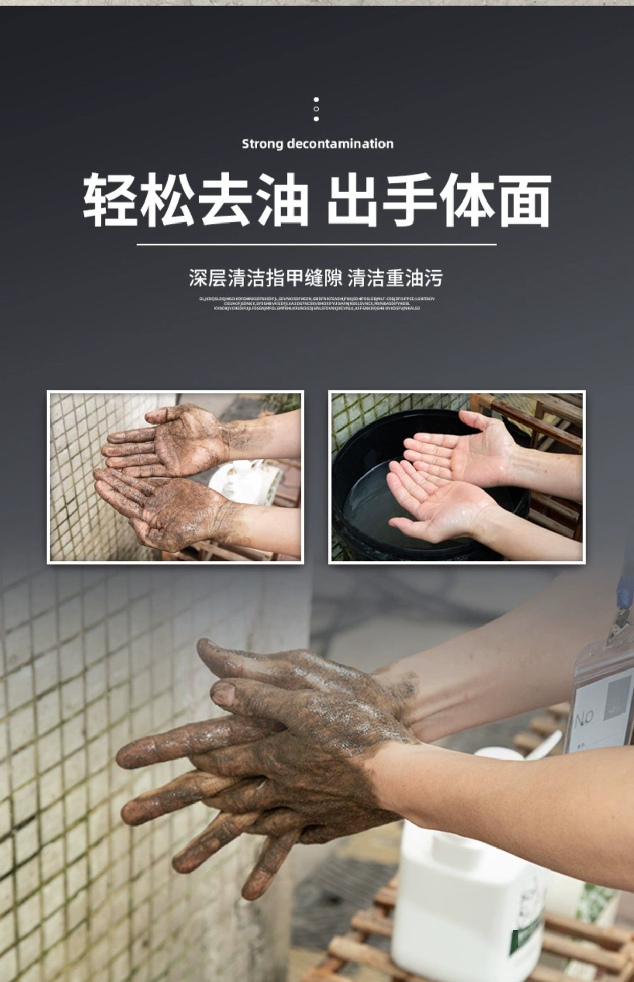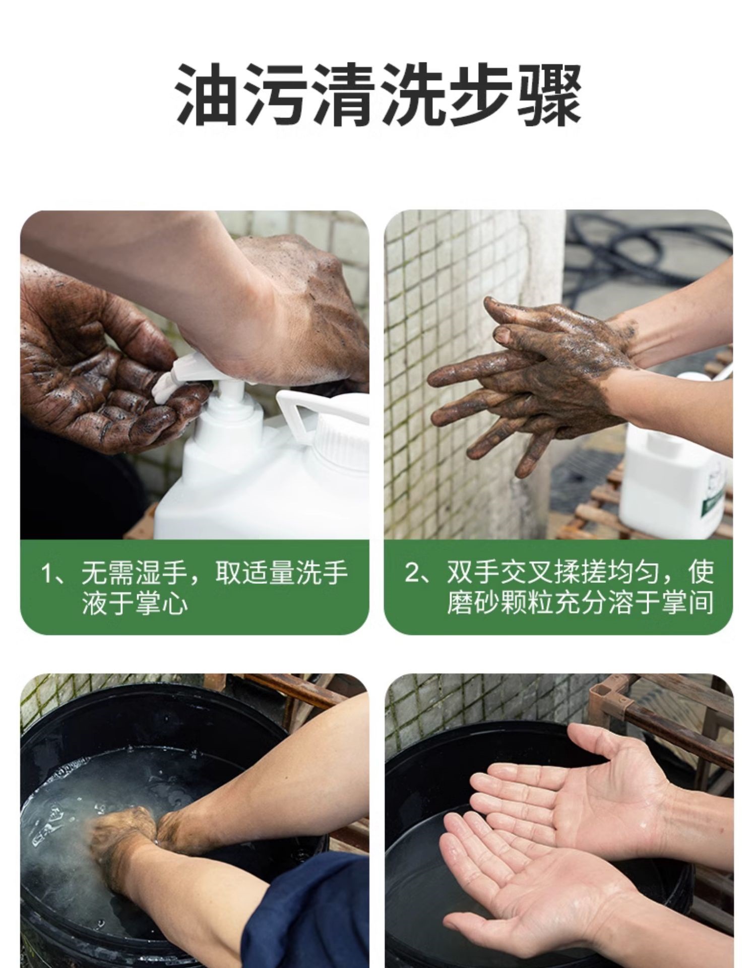 젖빛 산업 기름 얼룩 손 소독제 수리공 자동 수리 기계 무거운 기름 얼룩 청소 액체 검은 손 백색 모래 세척스토어 가기