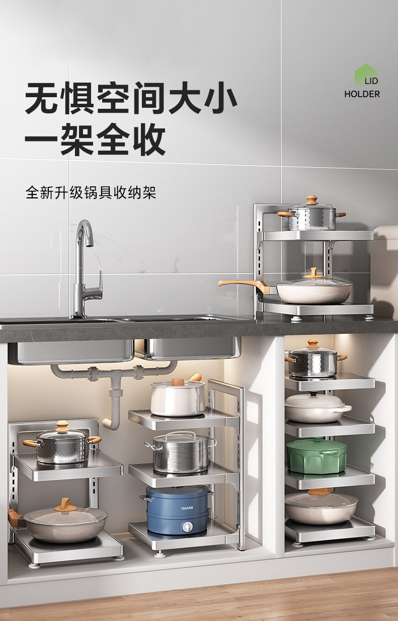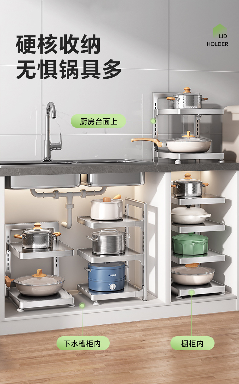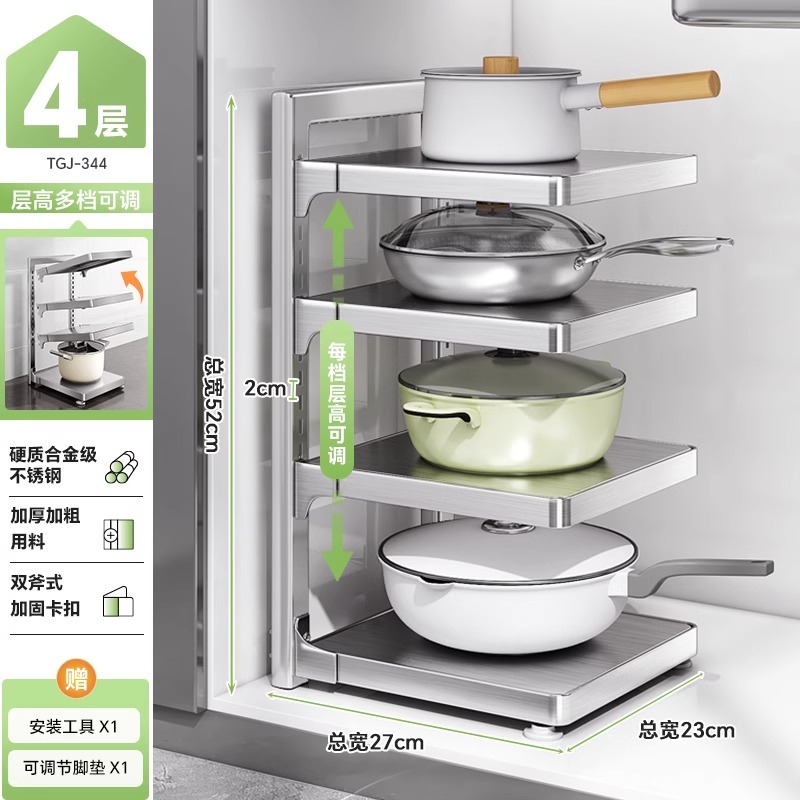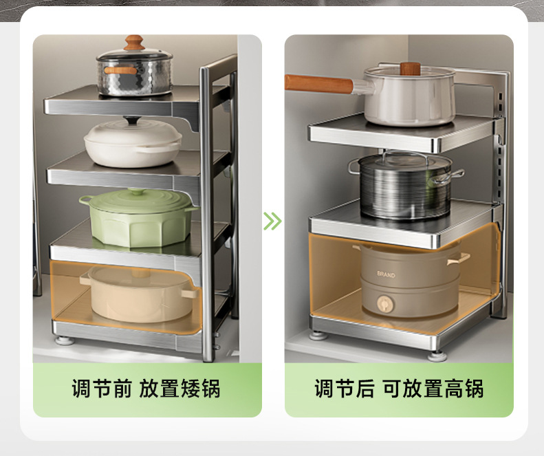 스테인레스 스틸 캐비닛 냄비 저장 랙 주방 다층 다기능 가정용 냄비 랙 싱크 스토리지 랙스토어 가기