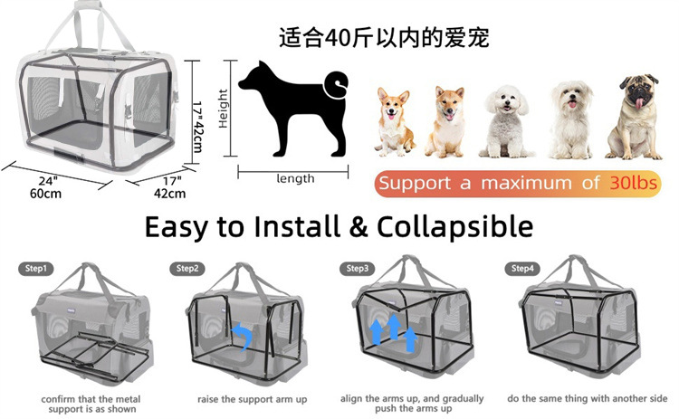 애완동물 차량용 가방, 개 케이지, 중대형견용 집, 고양이 가방, 외출용 휴대용 대용량 접이식 고양이 분만실