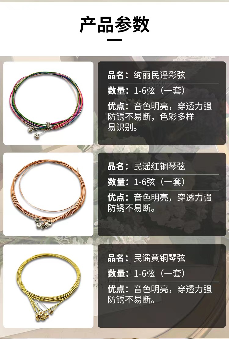 기타 현악기 포크 기타 1-6번 현 세트 황동 적동 현 녹 방지 쉽게 끊어지지 않음 개별 포장 현 액세서리 악기스토어 가기
