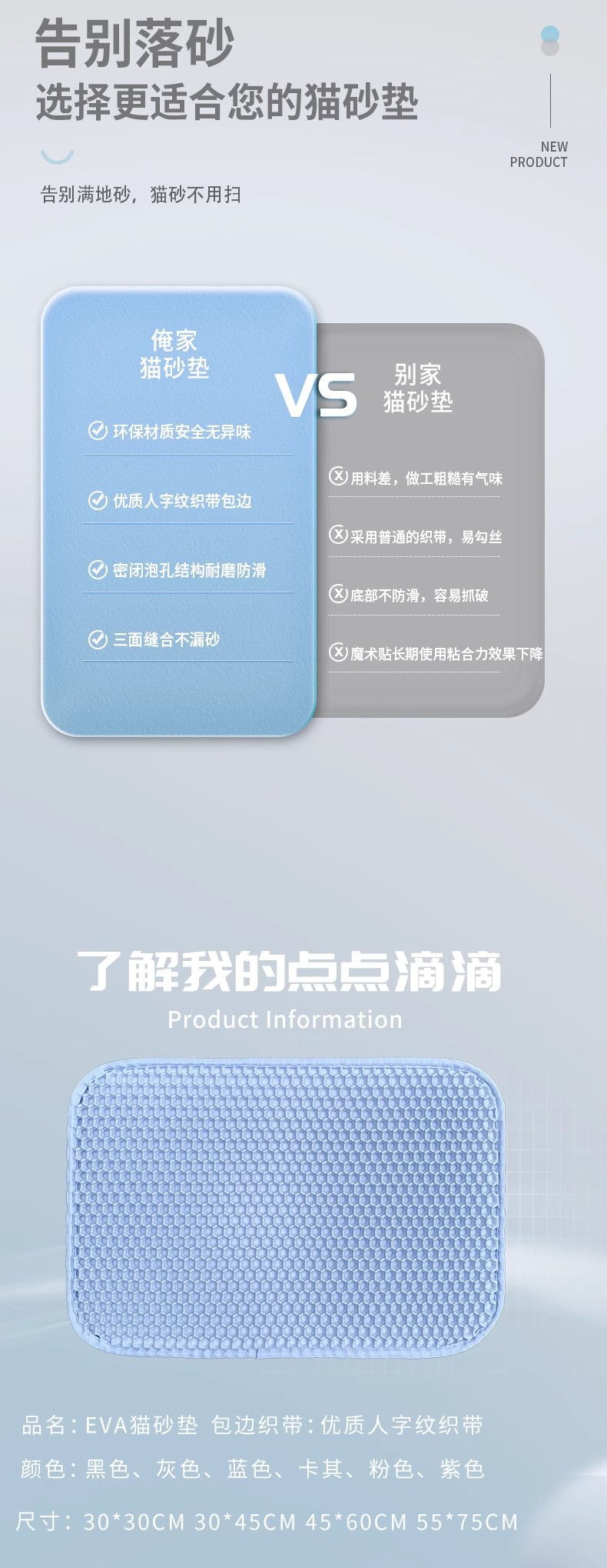 대외 무역 뜨거운 판매 더블 레이어 필터 고양이 쓰레기 매트 안티 테이크 아웃 고양이 쓰레기 상자 안티 스플래시 모래 제어 매트 애완 동물 고양이 용품스토어 가기