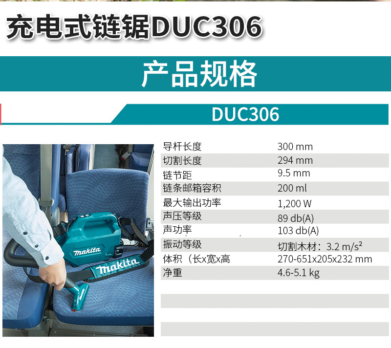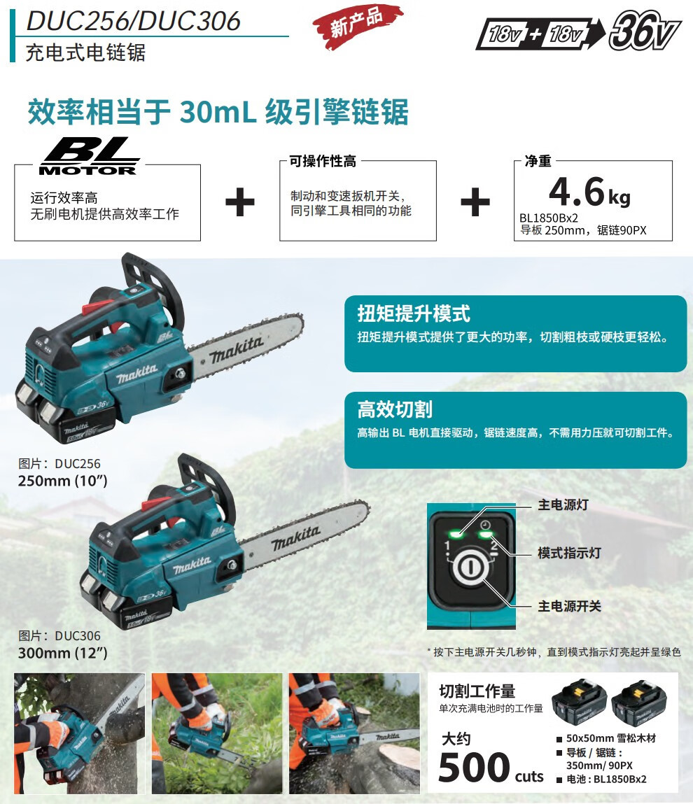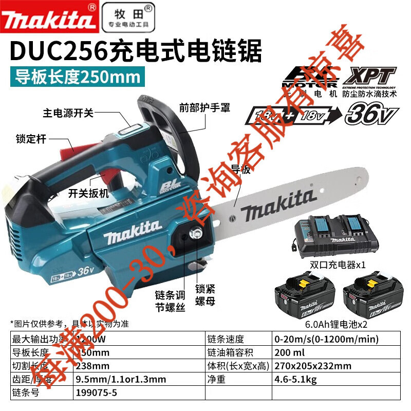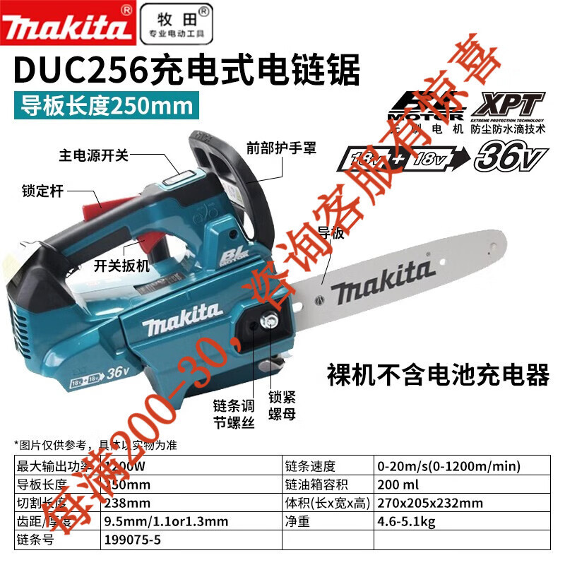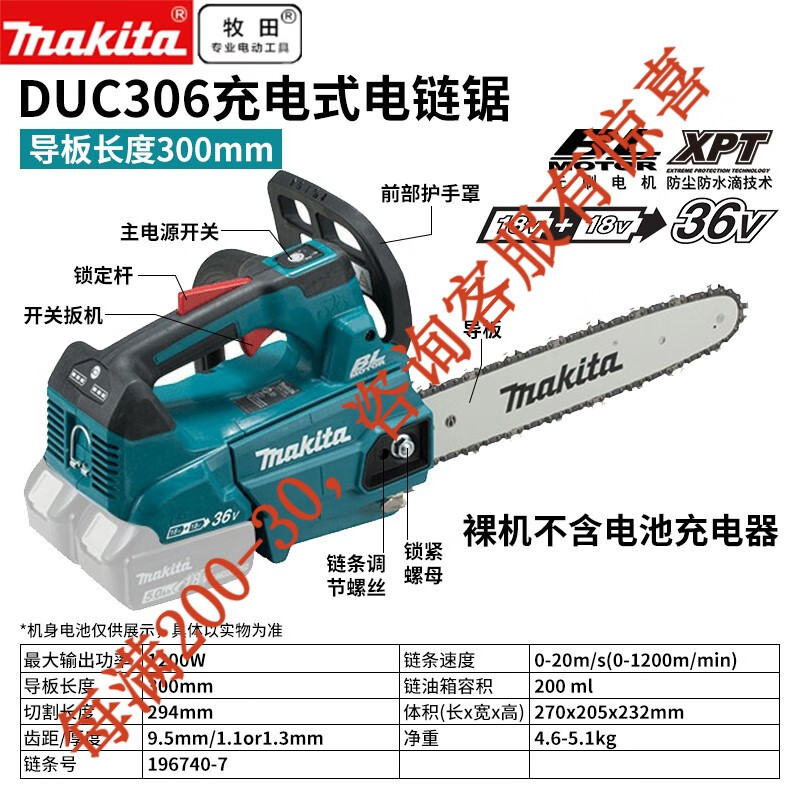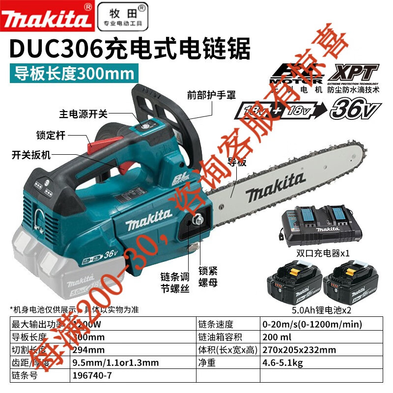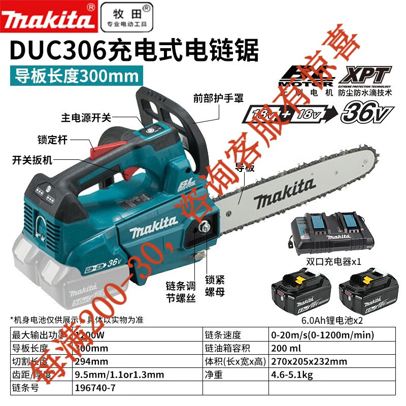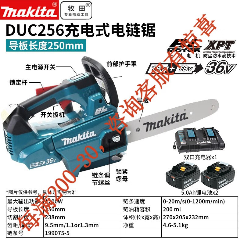 Makita Makita 36V 리튬 배터리 충전 전기 체인 톱 로깅 DUC306 체인은 DUC256 전기 작업자를 보았다