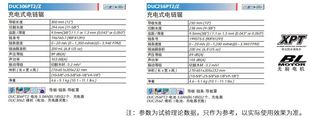 • DUC256 전기 전기톱 베어 머신에는 배터리 충전기가 포함되어 있지 않습니다.