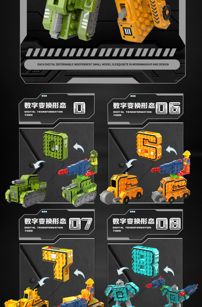어린이 DIY 조립 맞는 메카 0-9 변형 가능한 디지털 빌딩 블록 로봇 소년 변형 로봇 장난감스토어 가기