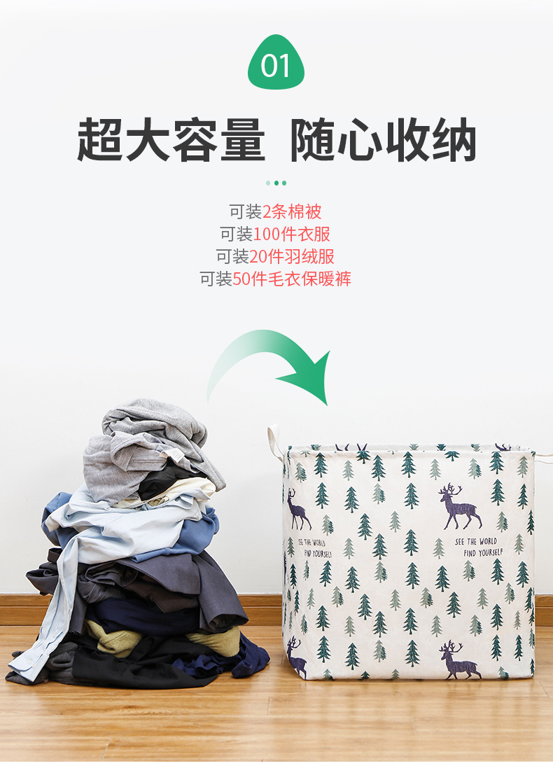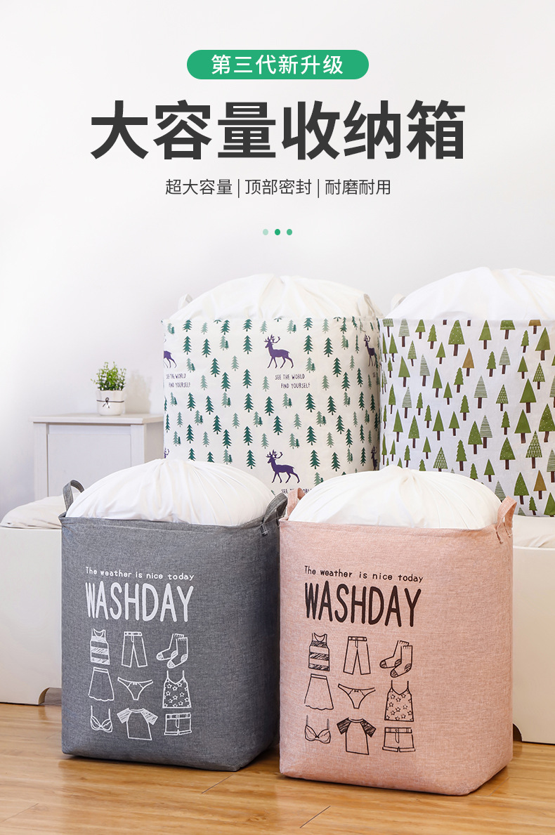 YQT9090 자이언트 사이즈 이불 보관 가방 접이식 수납함 끈으로 묶는 빨래 바구니 옷 보관 바구니스토어 가기