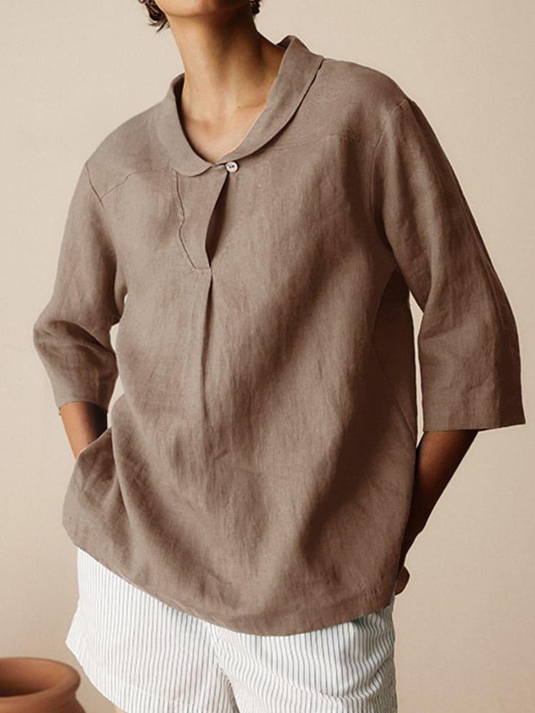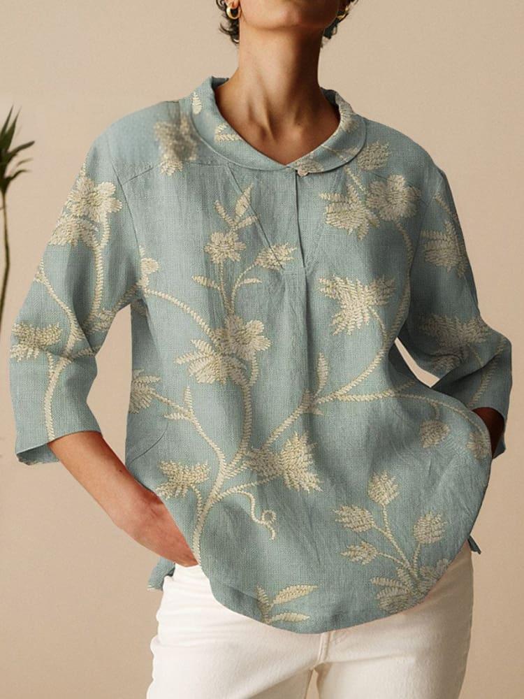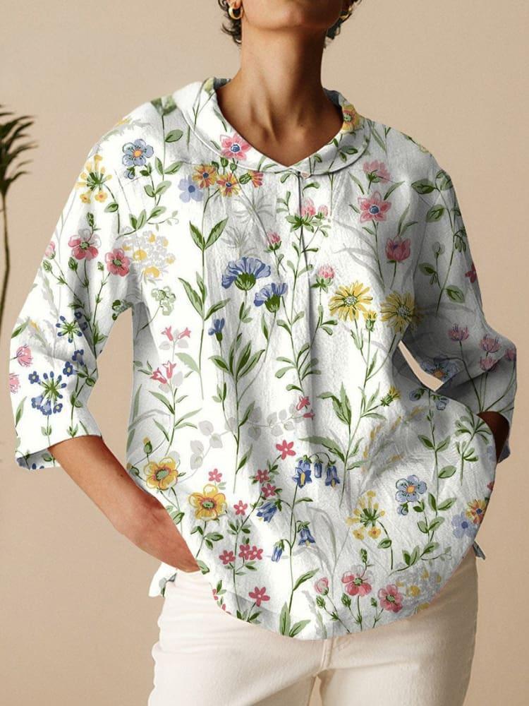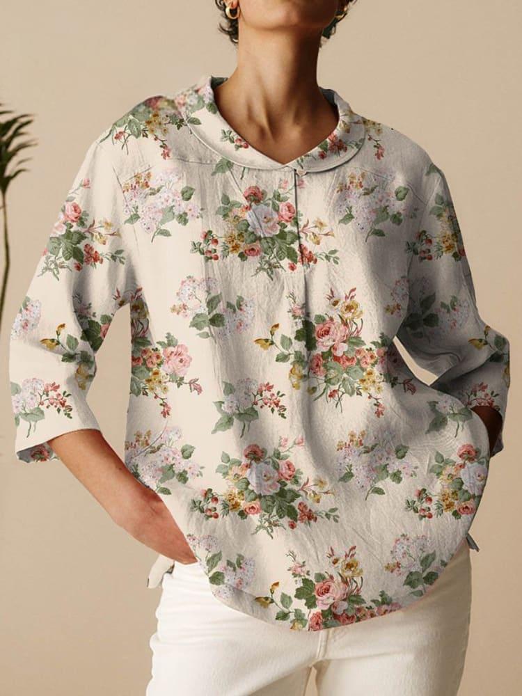 2024 아마존 봄 새로운 옷깃 미드 슬리브 셔츠 플러스 사이즈 여성용 빈티지 플로럴 티셔츠스토어 가기