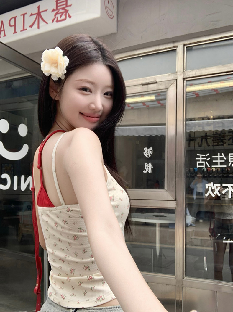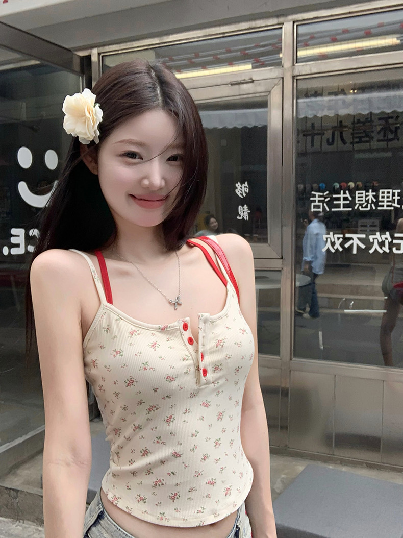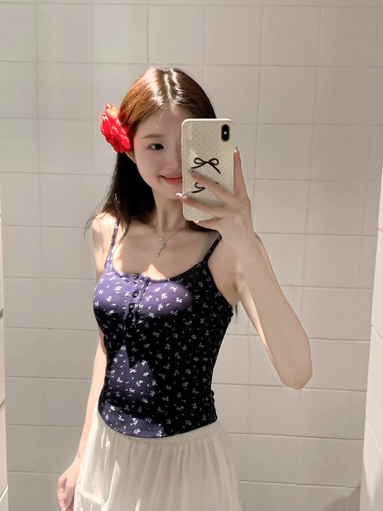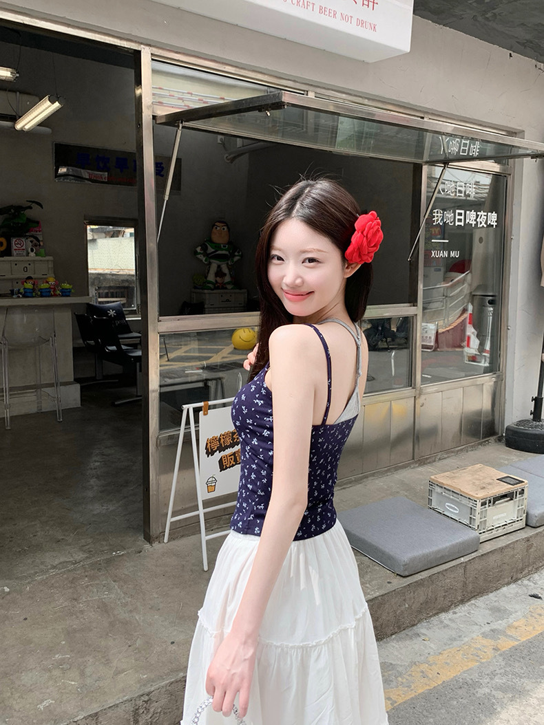 순수한 욕망 스타일 가짜 투피스 플로랄 카미솔 여성 아우터웨어 여름 핫 걸 슬림핏 슬림핏 슬림베이스탑 가슴 패드스토어 가기