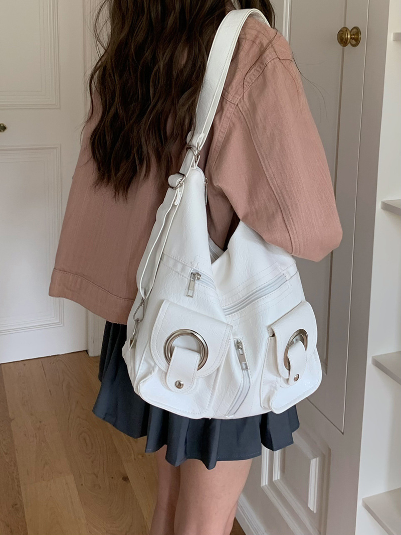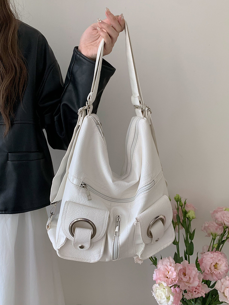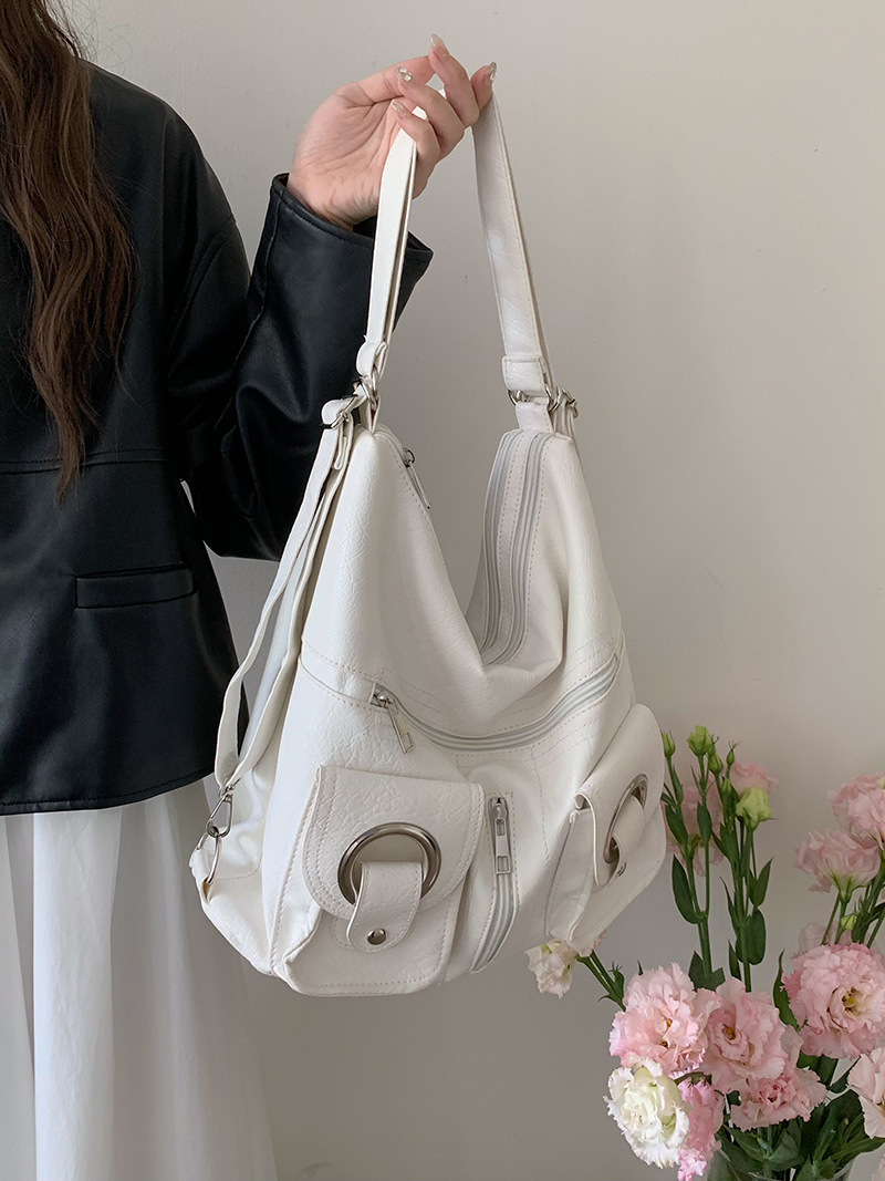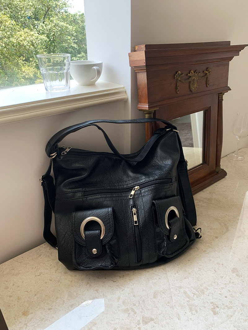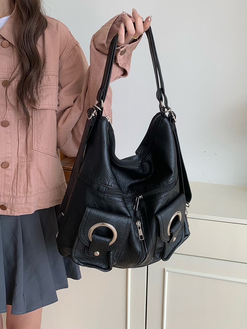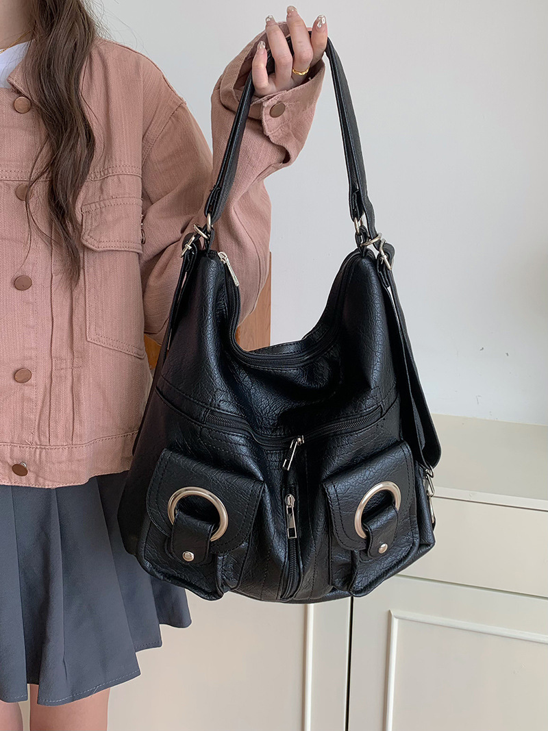 심플하고 다용도로 활용 가능한 지퍼 포켓 PU 가죽 토트백, 숄더백, 통근용 대용량 백팩, 독특한 디자인