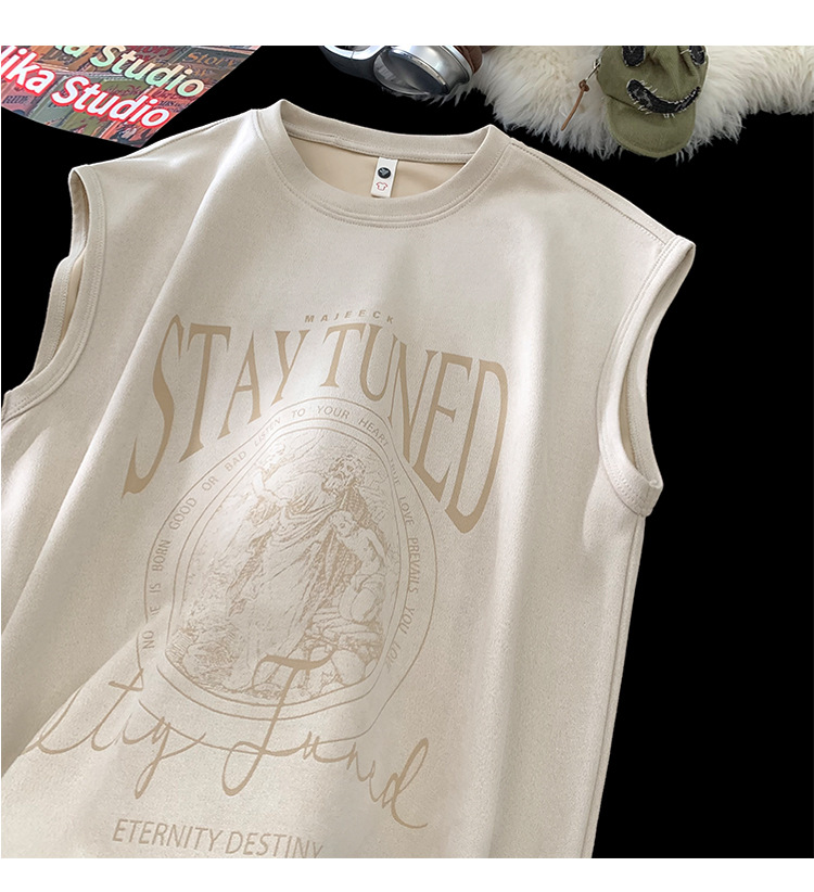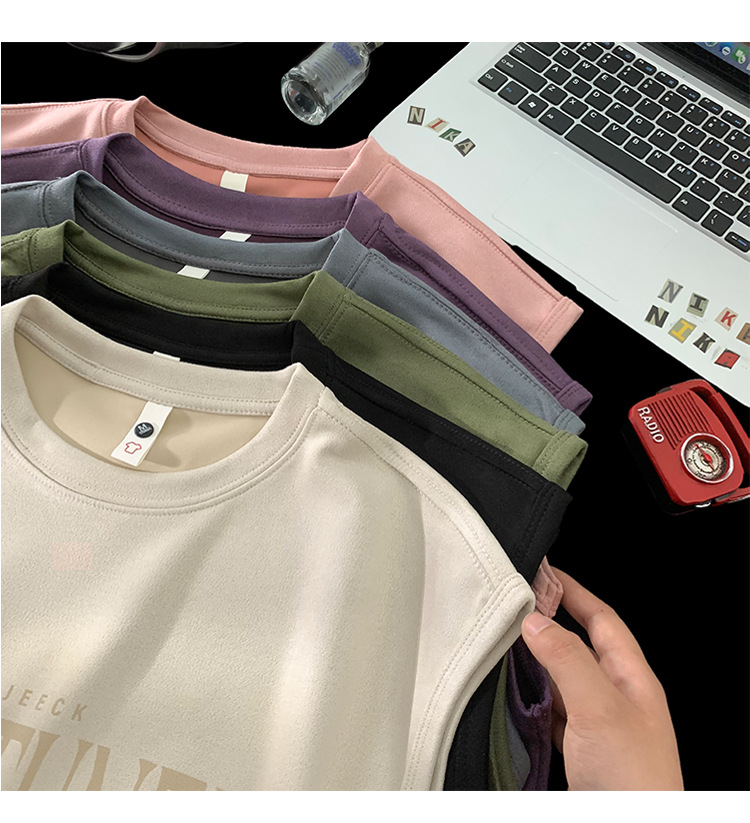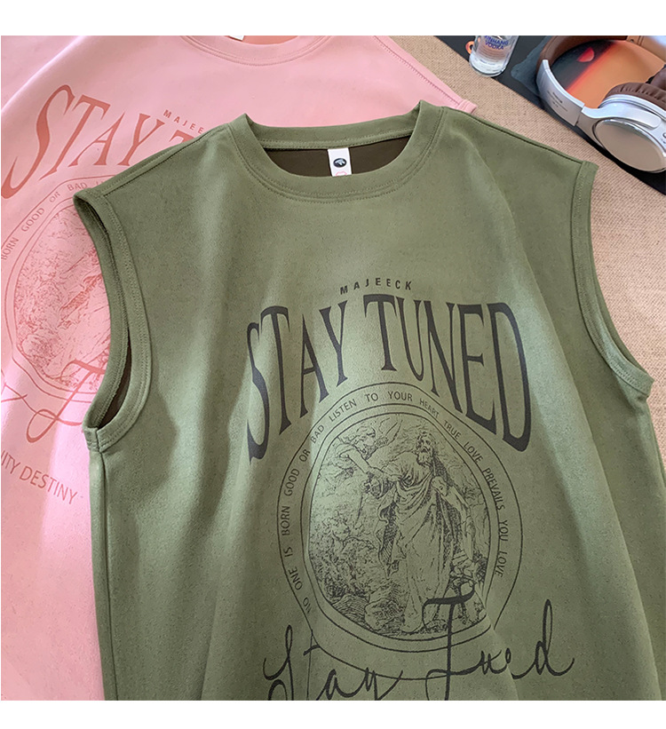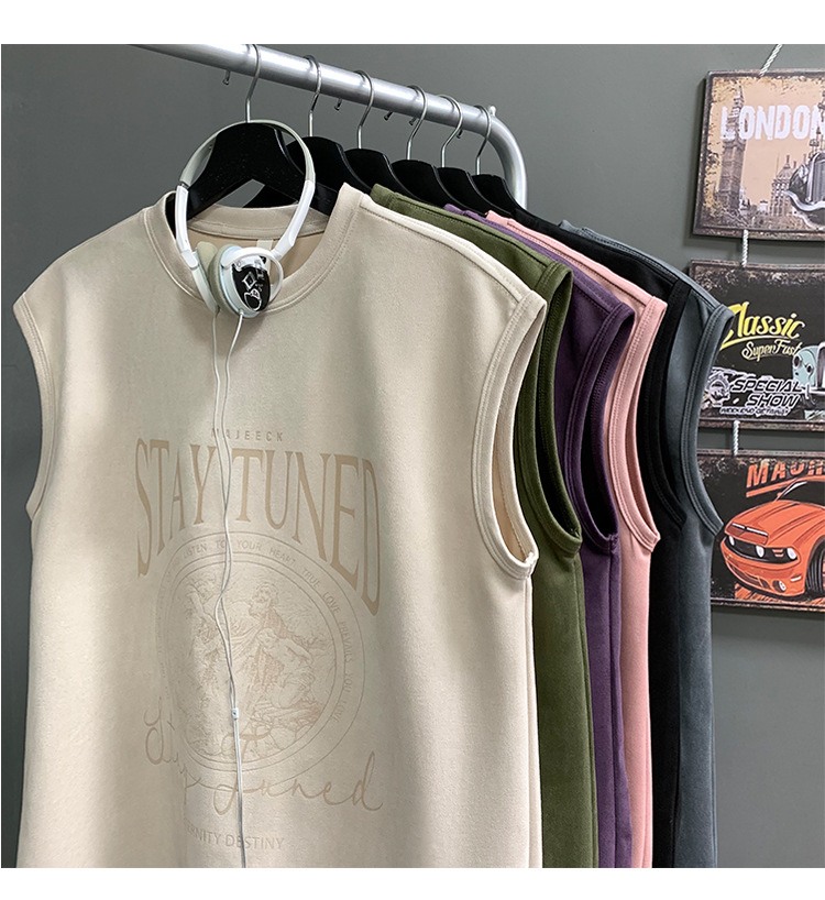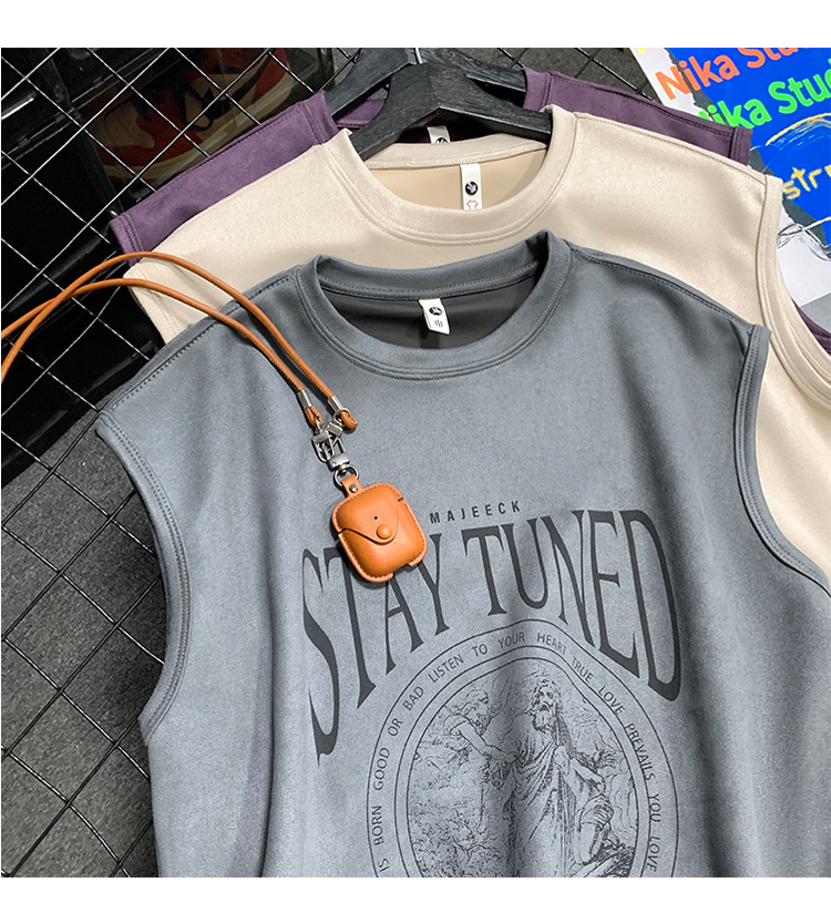 유행 스웨이드 웨이스트 코트 남자 여름 유행 브랜드 스포츠맨 홍콩 스타일 느슨한 외부 착용 민소매 티셔츠 탑스토어 가기