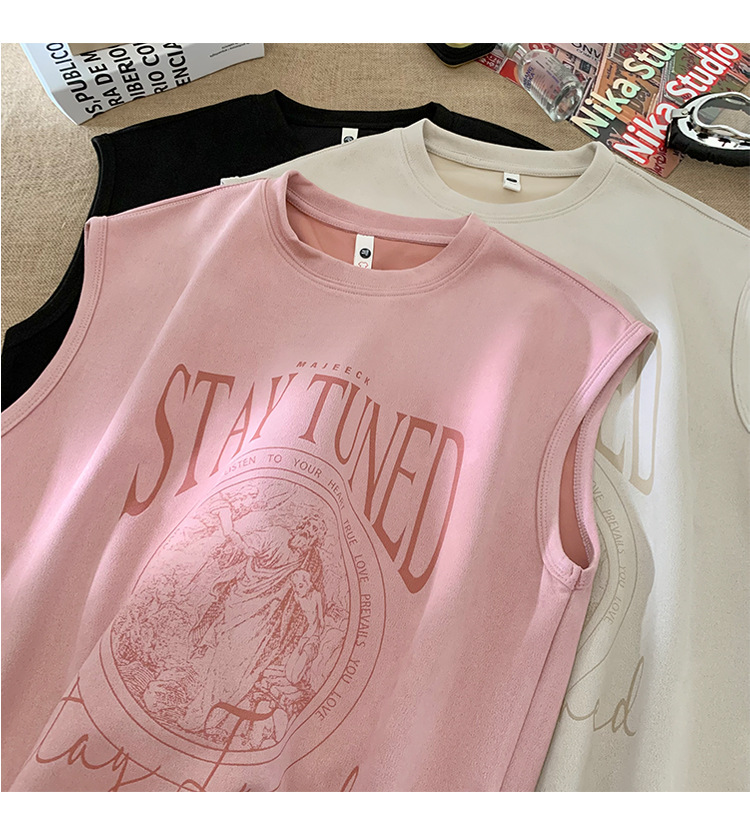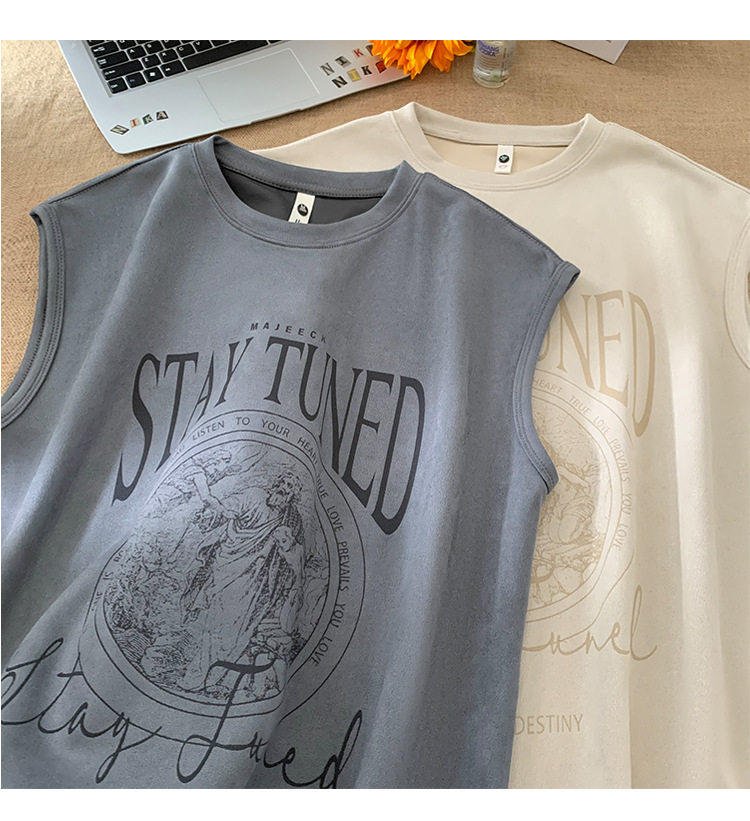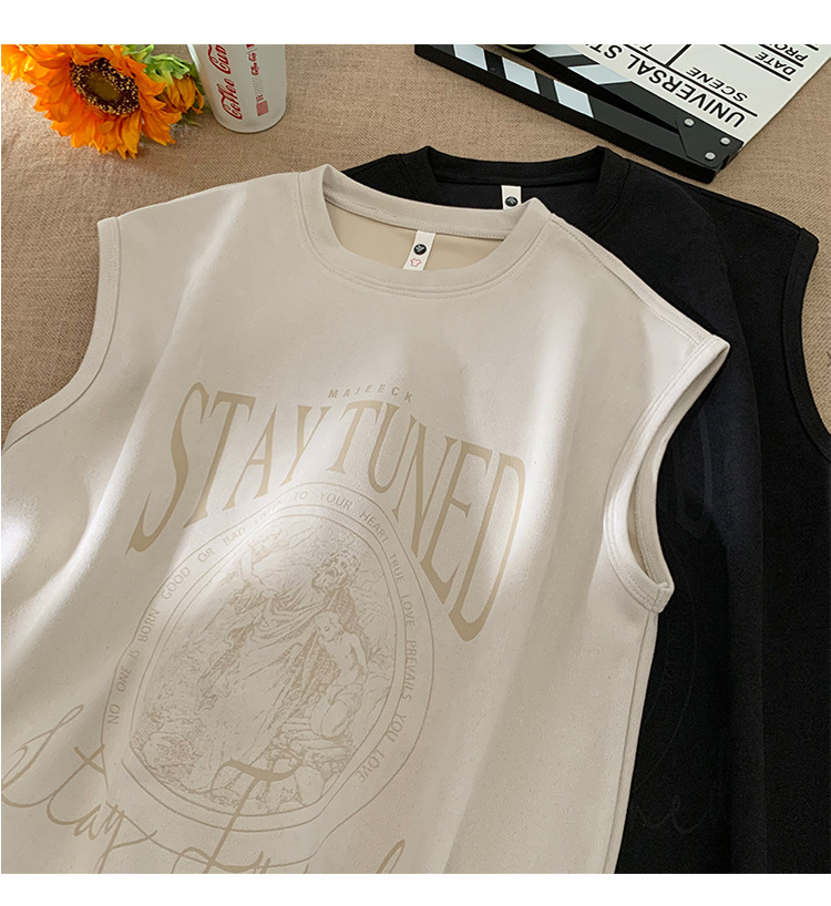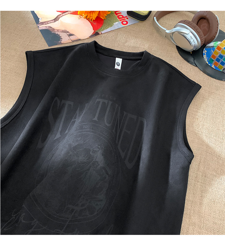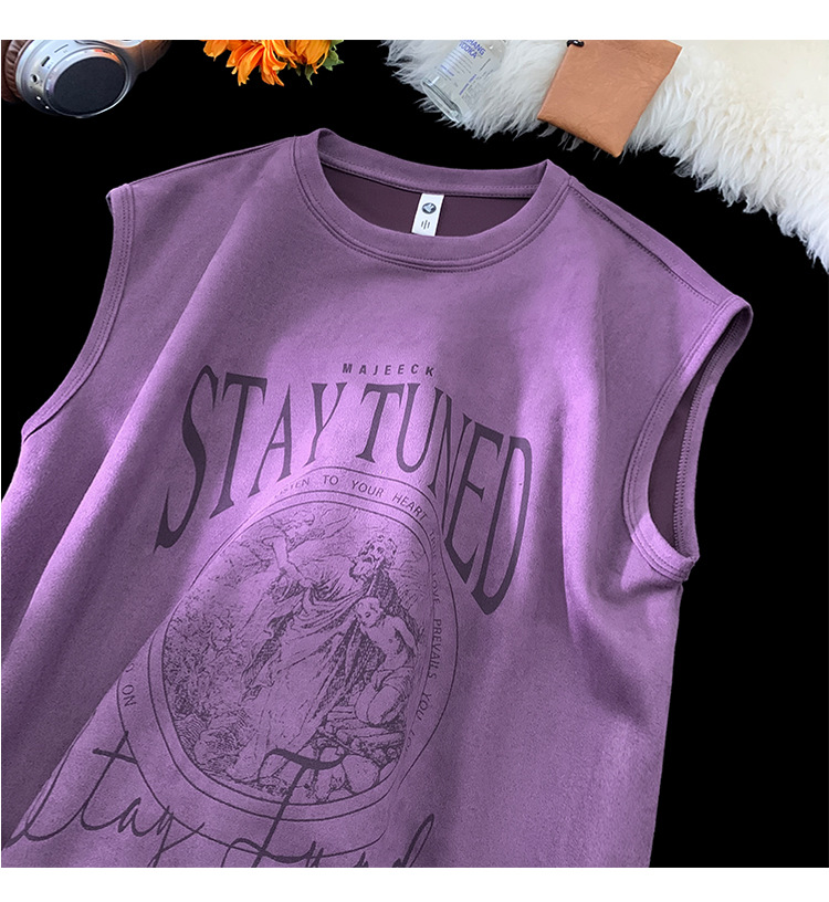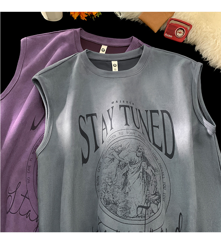 유행 스웨이드 웨이스트 코트 남자 여름 유행 브랜드 스포츠맨 홍콩 스타일 느슨한 외부 착용 민소매 티셔츠 탑스토어 가기