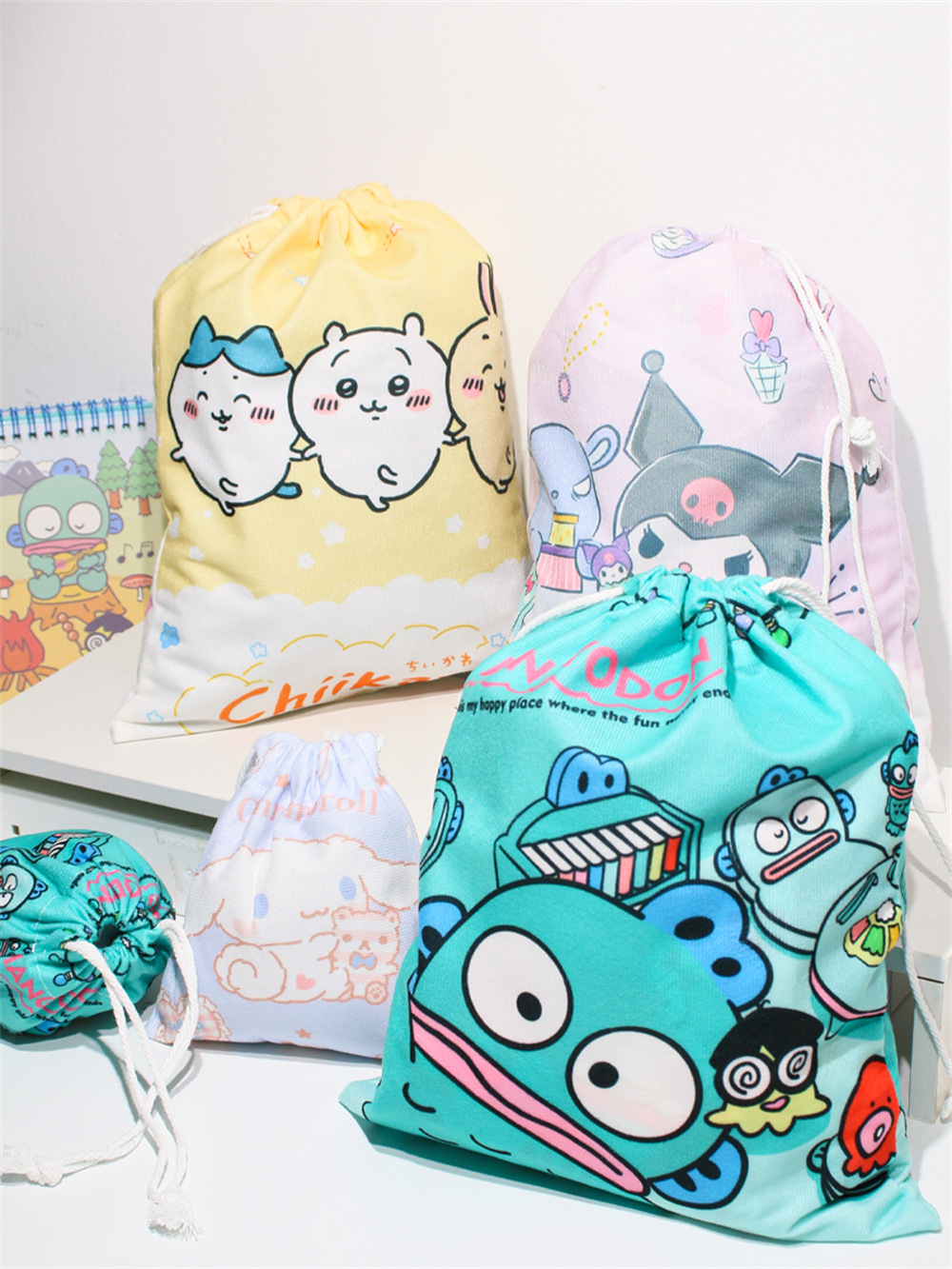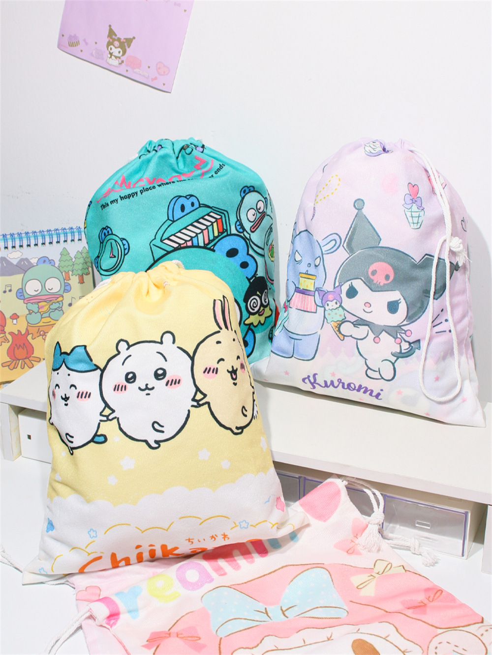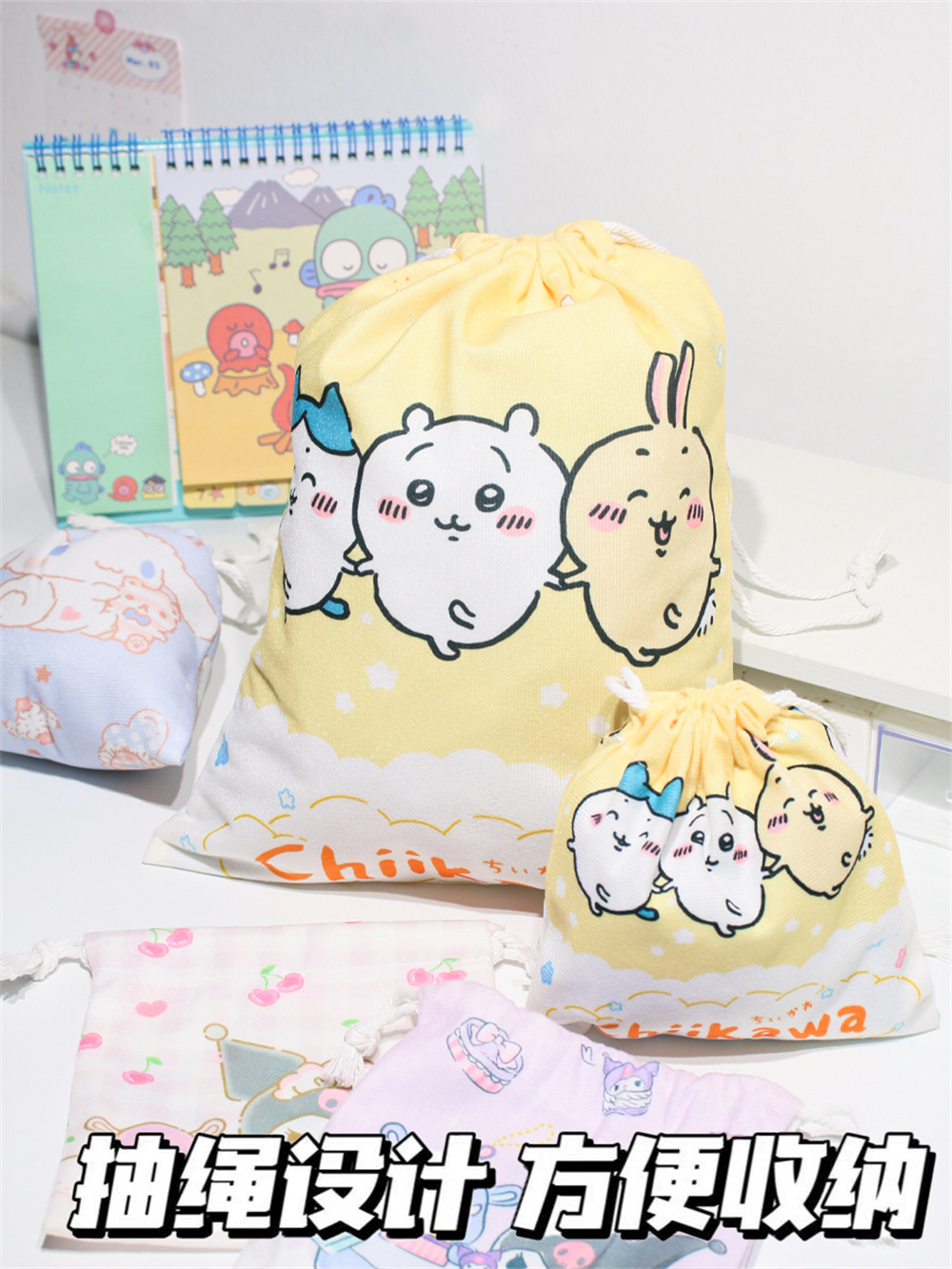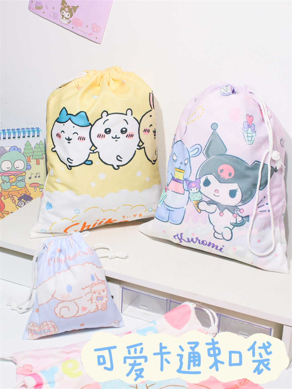 귀엽고 예쁜 수납 가방, 소녀스러운 하트 모양의 끈 조절식 잡화 분류 친환경 가방, 대용량 학생용 만화 캐릭터 조임끈 가방
