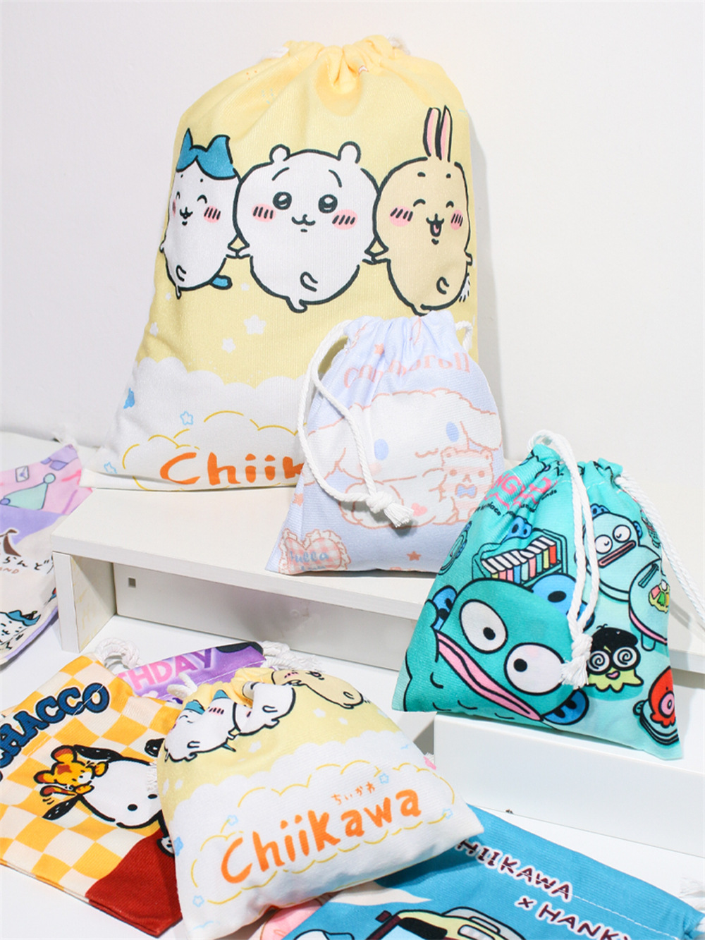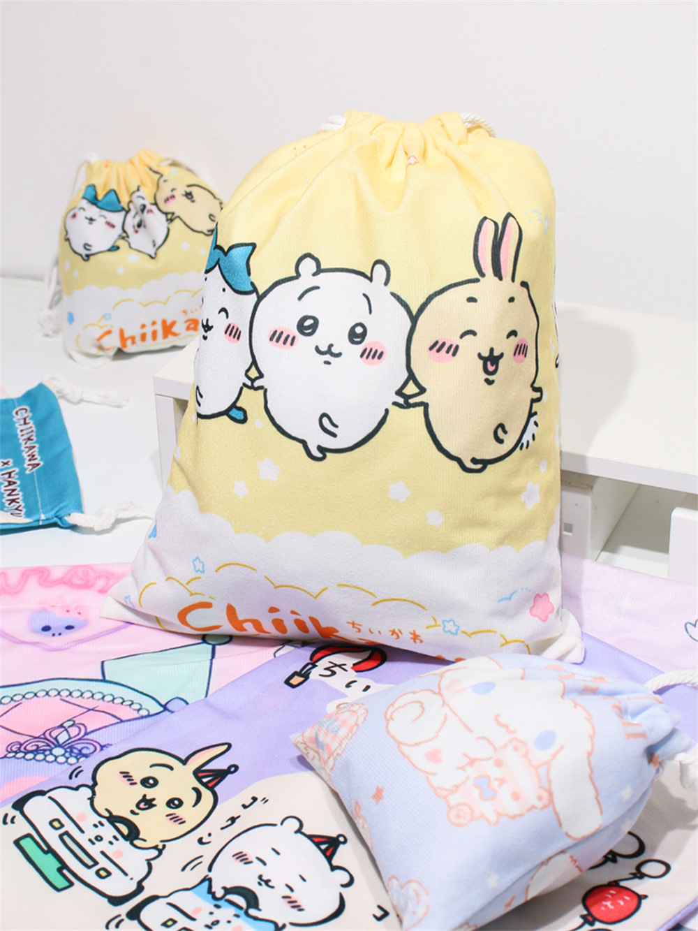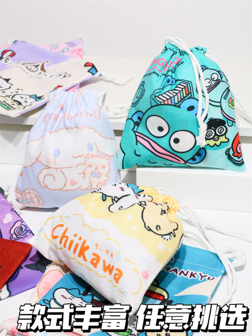 귀엽고 예쁜 수납 가방, 소녀스러운 하트 모양의 끈 조절식 잡화 분류 친환경 가방, 대용량 학생용 만화 캐릭터 조임끈 가방스토어 가기