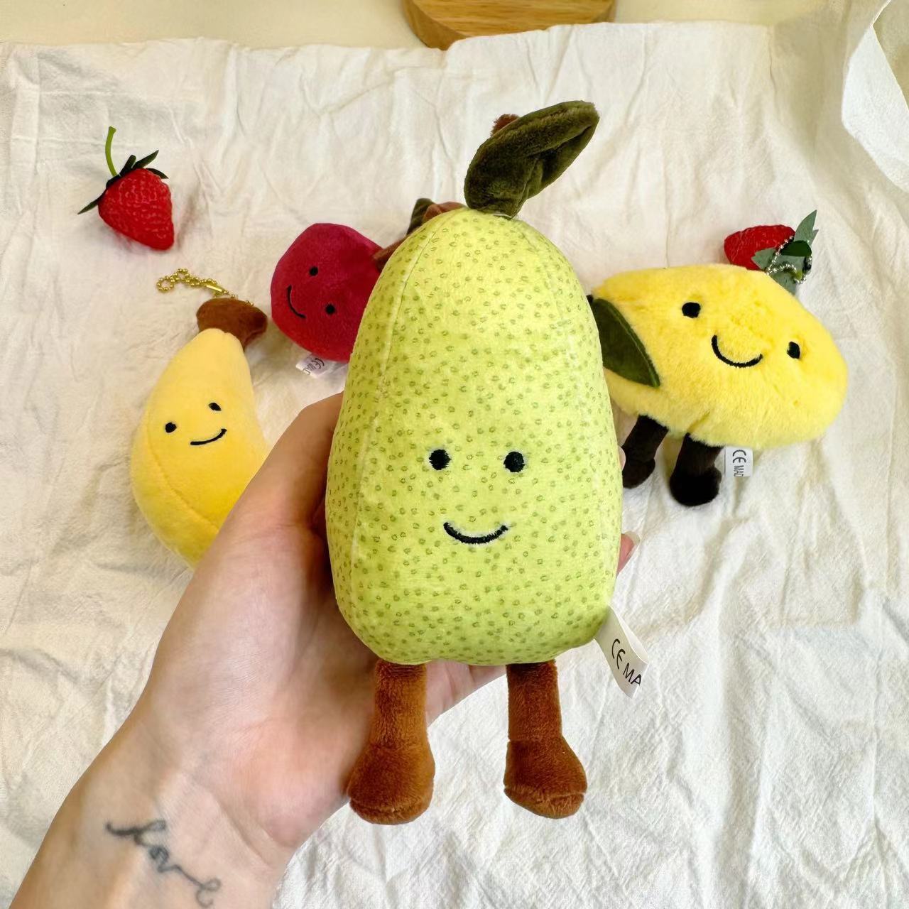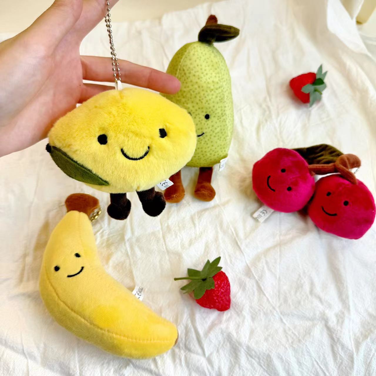 재미있는 시뮬레이션 과일 시리즈 키 링 펜던트 바나나 레몬 체리 배 봉제 인형 가방 펜던트스토어 가기