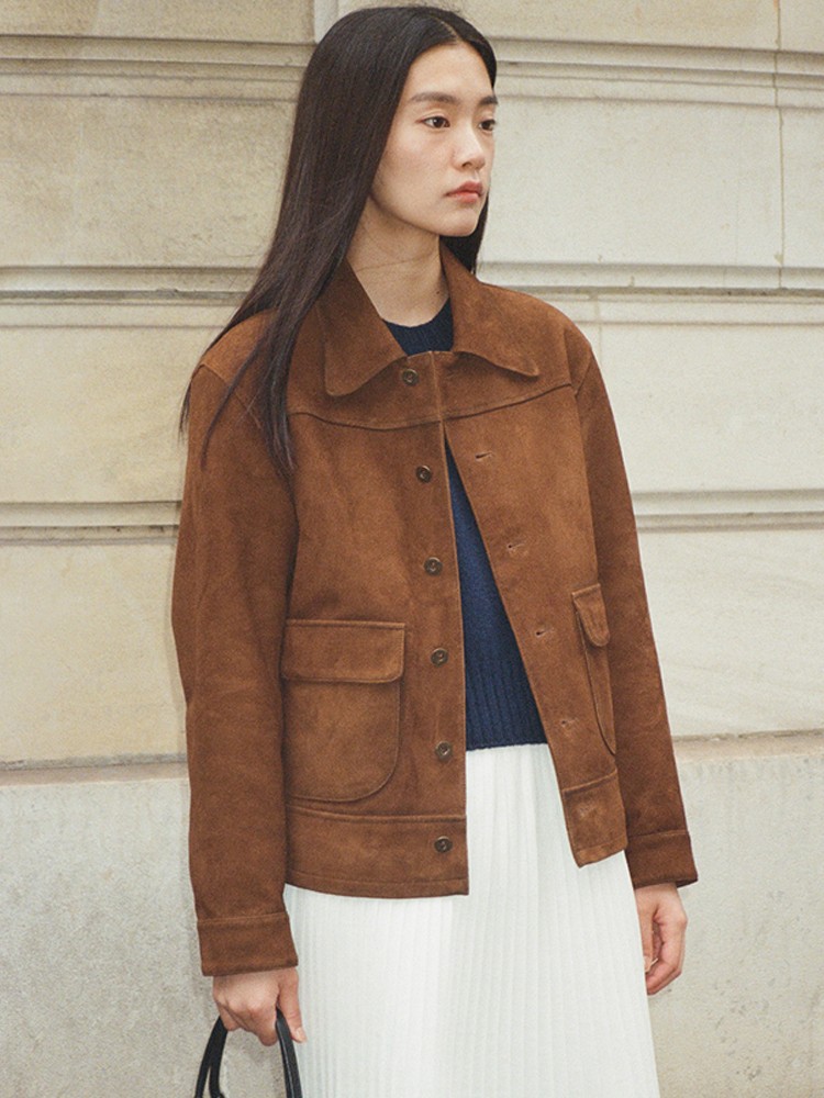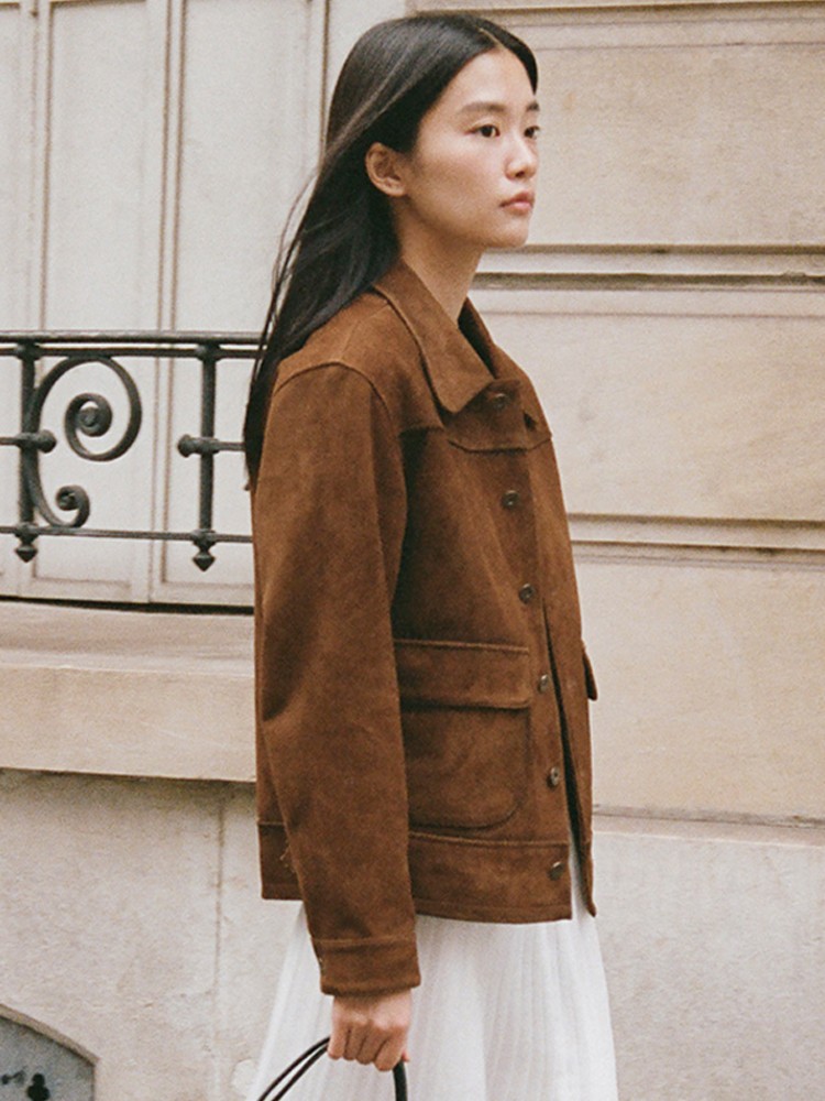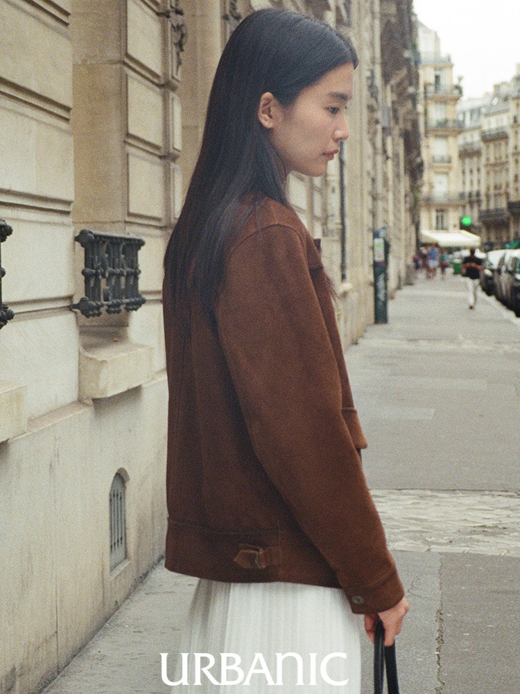 재고 urbanic30 가죽 재킷 24 여성을위한 새로운 한국 통근 중가죽 긴 소매 옷깃 재킷