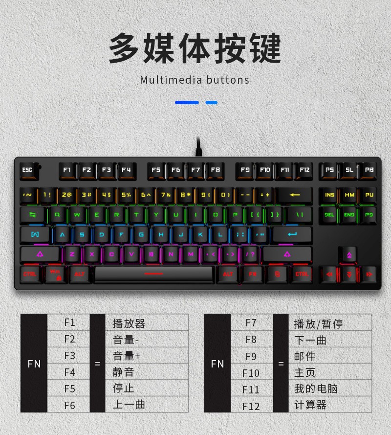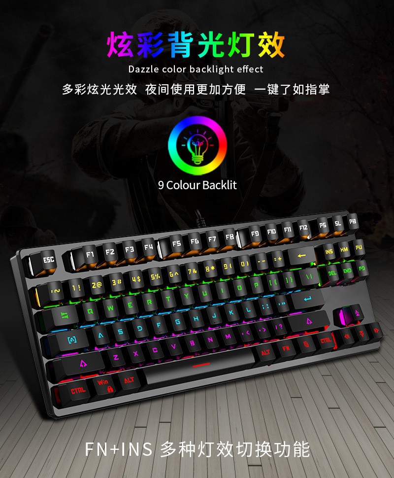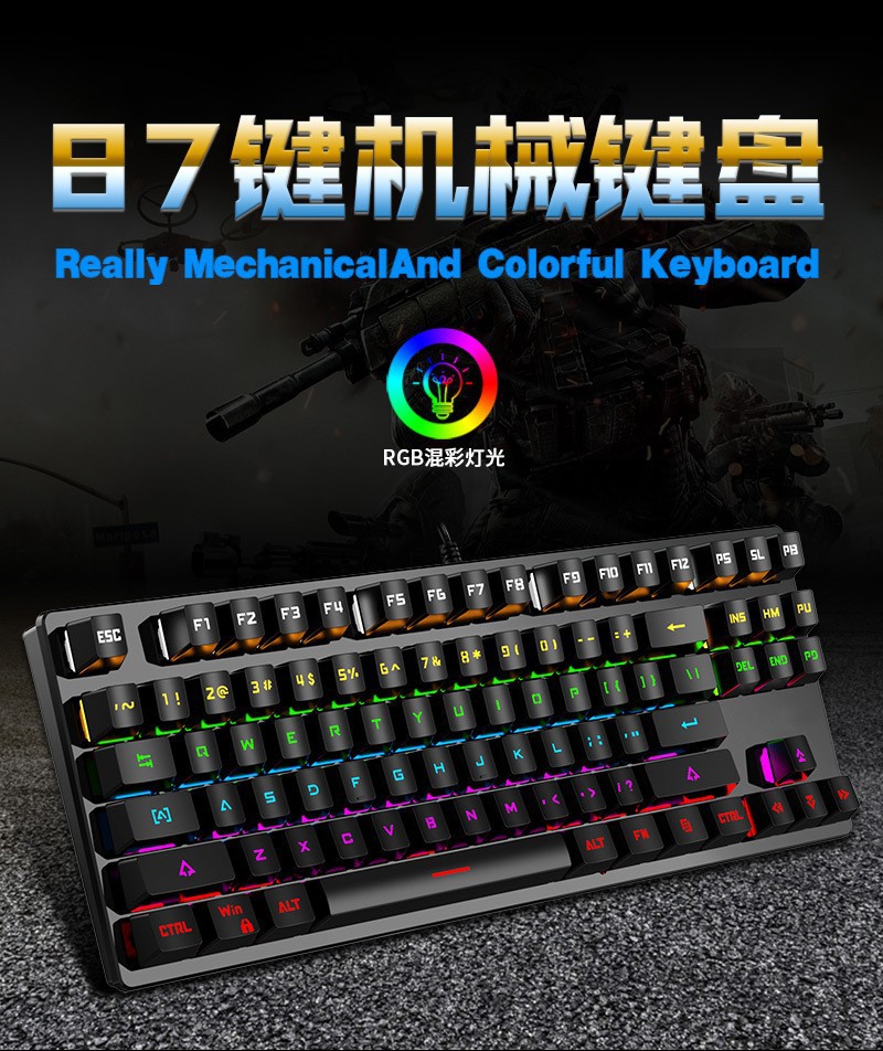 국경 간 현물 거래 러시아어 K7 기계식 키보드 87키 러시아어 게임 키보드 러시아어 컴퓨터 유선 키보드스토어 가기