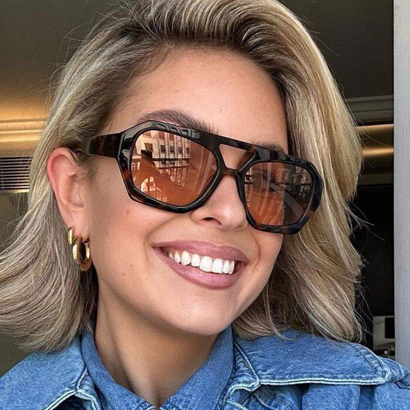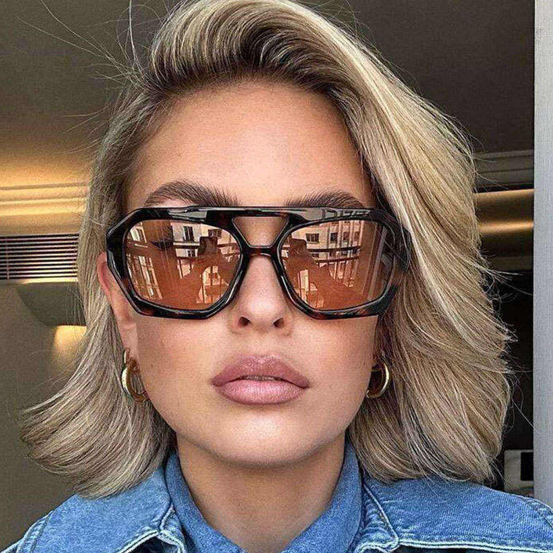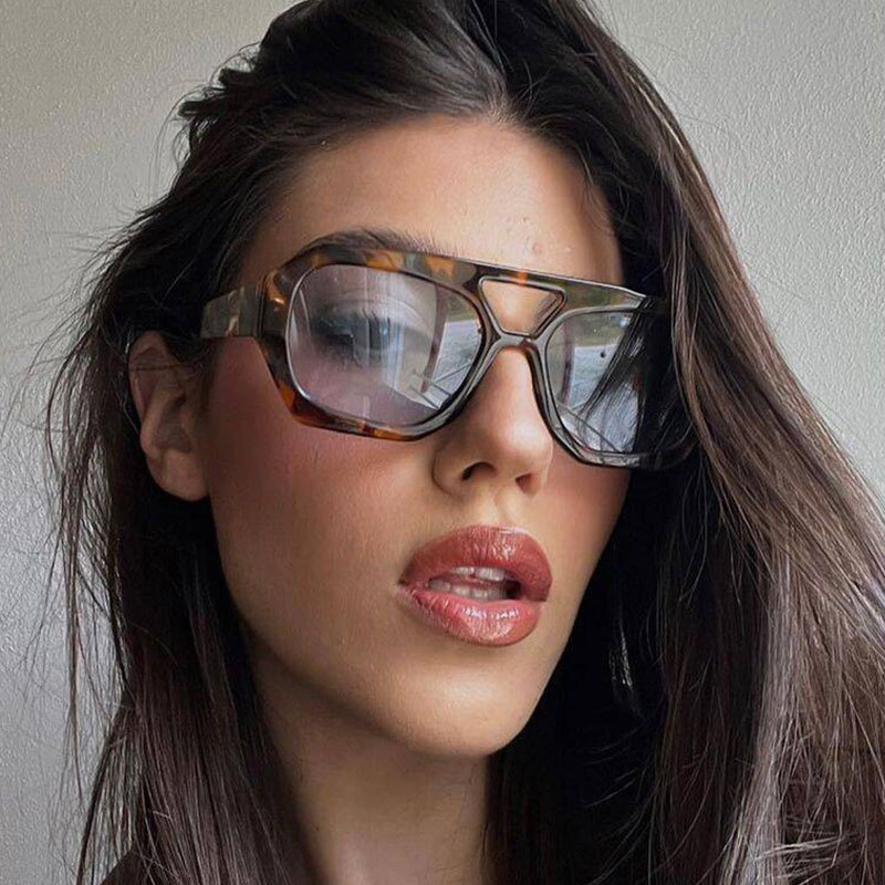 2025년 새로운 유럽과 미국의 레오파드 프린트 더블 빔 선글라스 대형 프레임 패션 스트리트 스타일 착용 회색 선글라스 블랙 PC스토어 가기