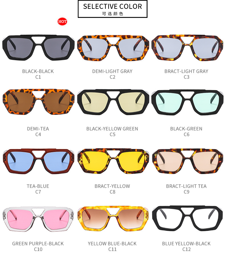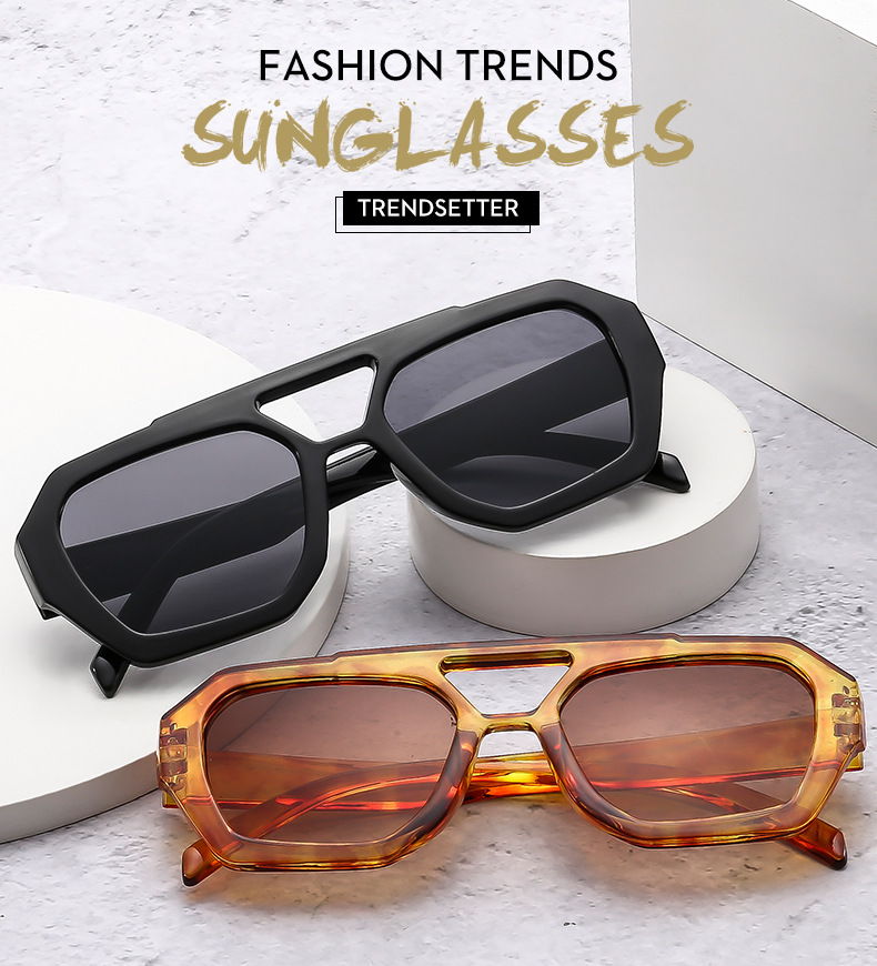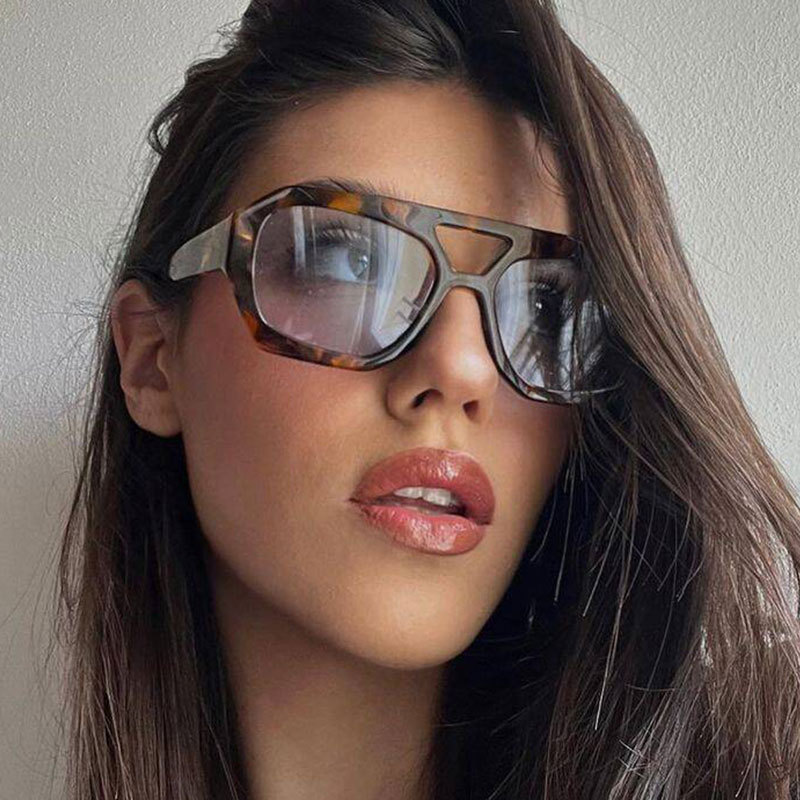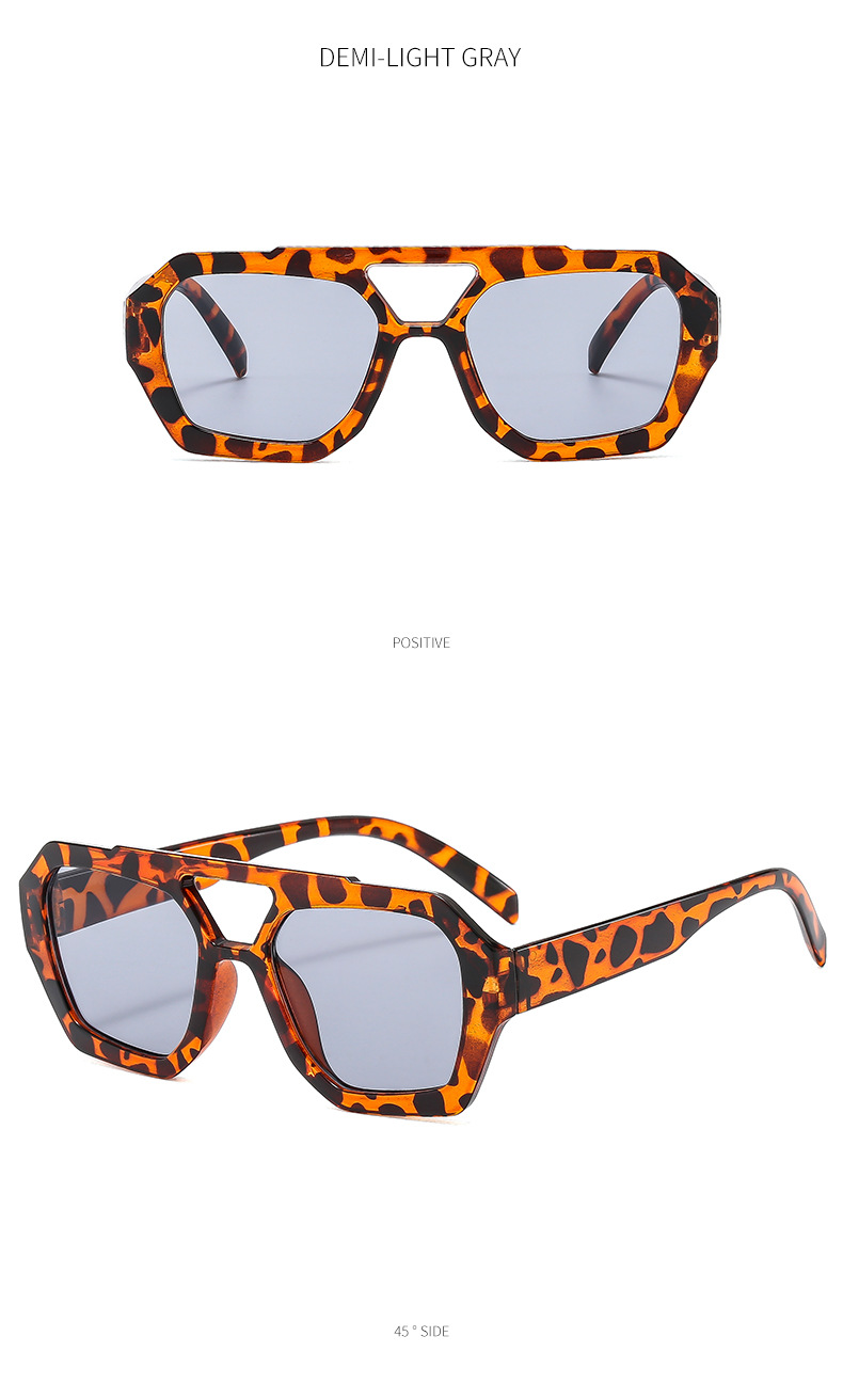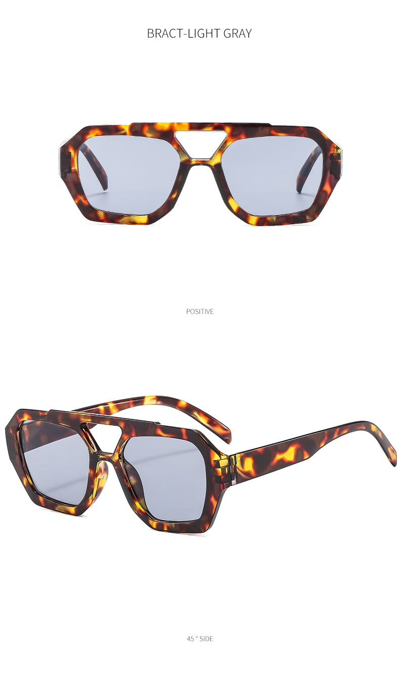 2025년 새로운 유럽과 미국의 레오파드 프린트 더블 빔 선글라스 대형 프레임 패션 스트리트 스타일 착용 회색 선글라스 블랙 PC