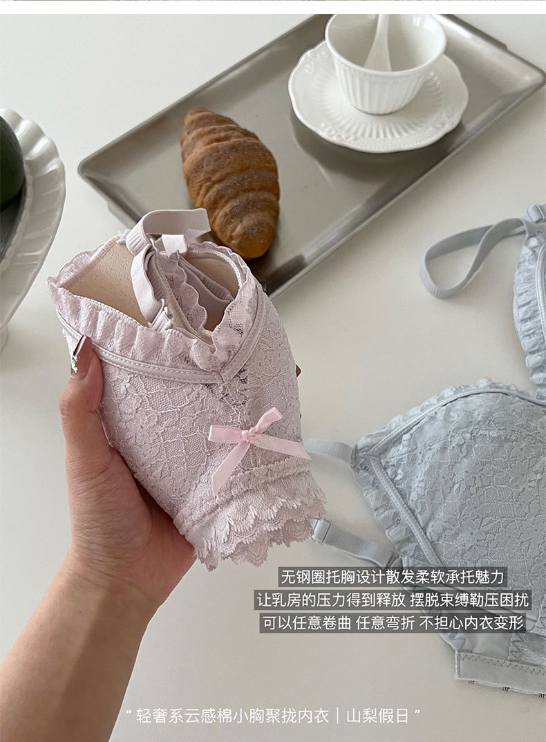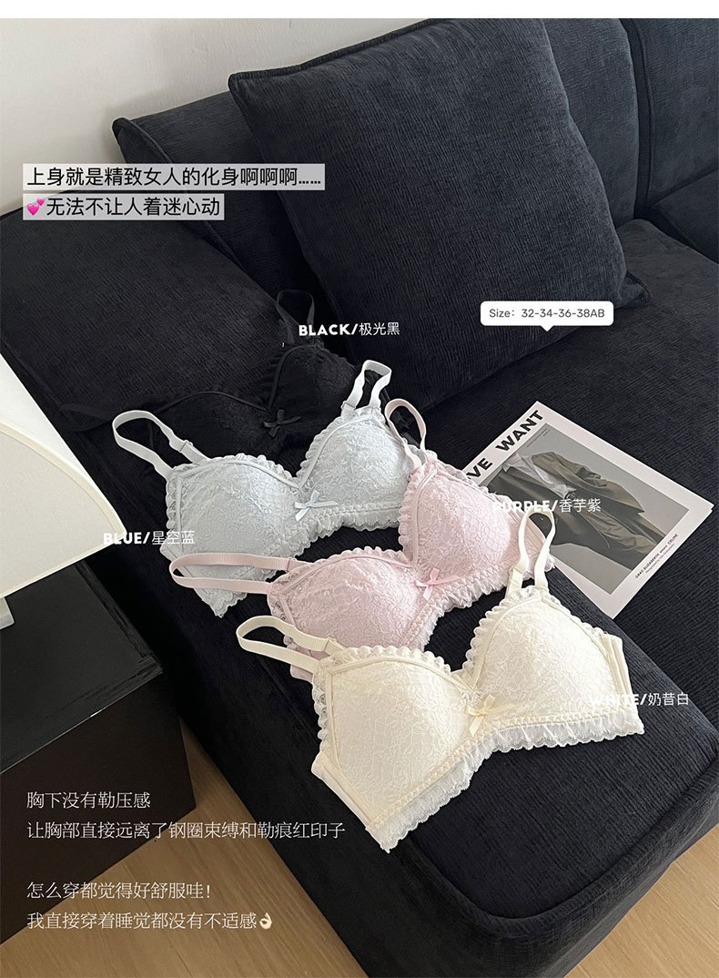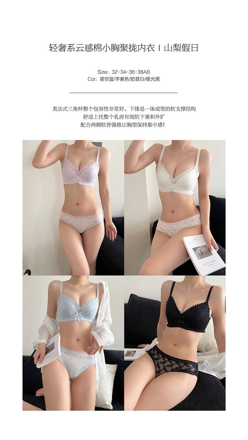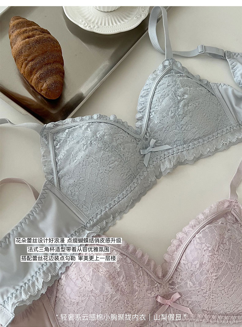 프랑스 트라이앵글 컵 라이트 럭셔리 스타일 클라우드 느낌 코튼 작은 가슴 모임 소녀 속옷 스틸 링 아름 다운 백 브라 대외 무역 국경스토어 가기