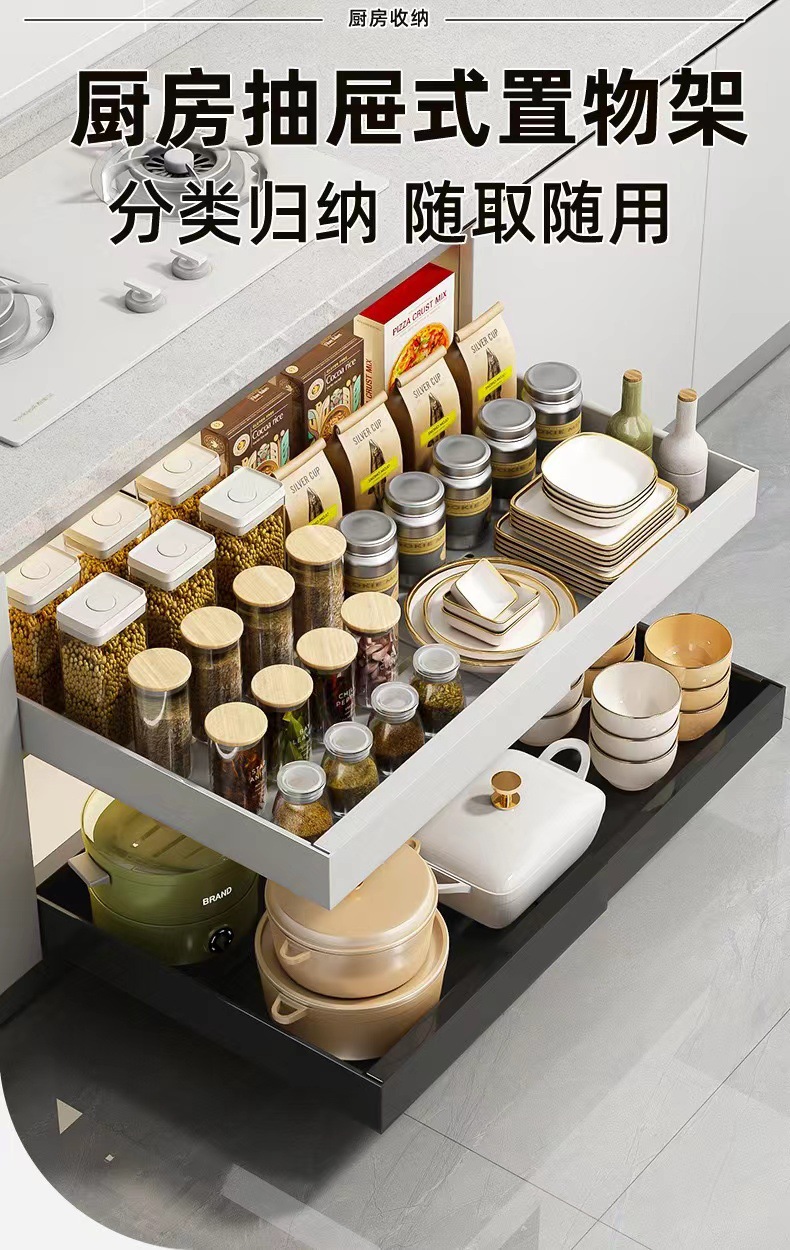 펀치없는 개폐식 캐비닛 풀아웃 바구니 풀아웃 스토리지 랙 더 낮은 싱크 서랍 그릇 바구니 주방 스토리지 랙 아티팩트