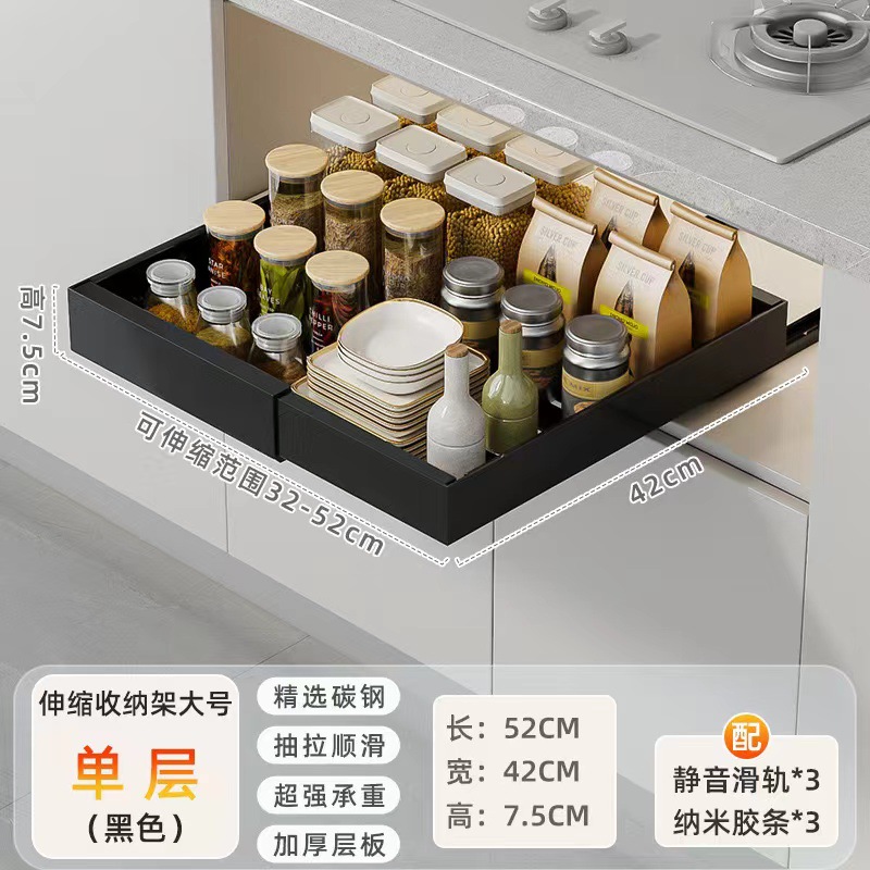 펀치없는 개폐식 캐비닛 풀아웃 바구니 풀아웃 스토리지 랙 더 낮은 싱크 서랍 그릇 바구니 주방 스토리지 랙 아티팩트스토어 가기