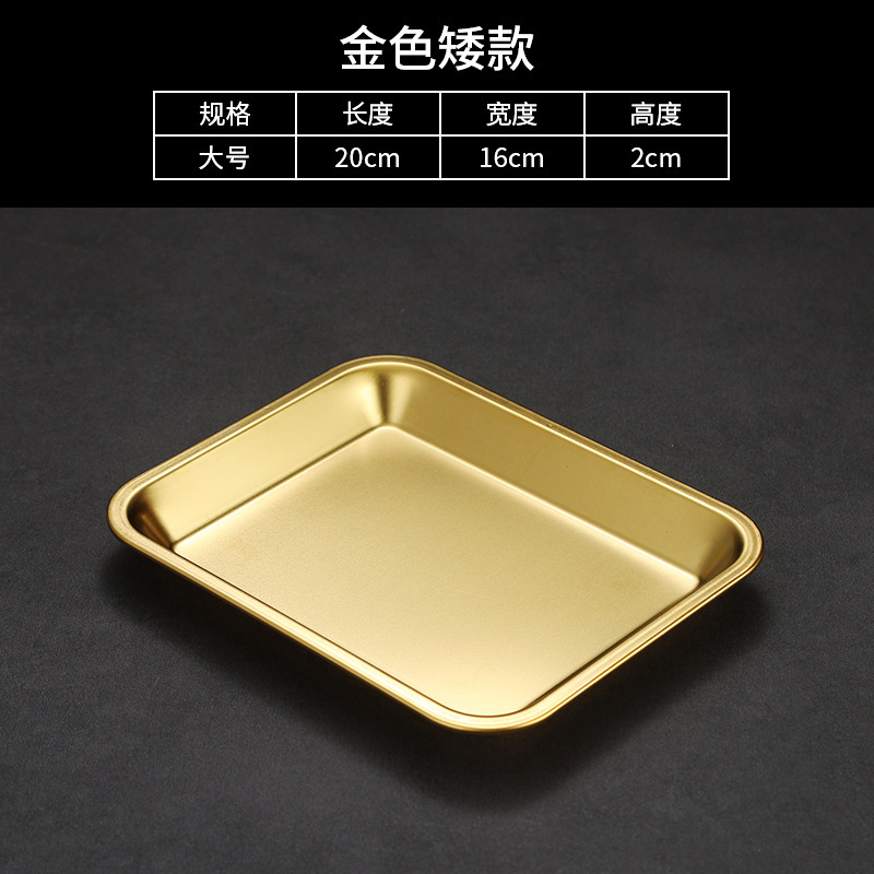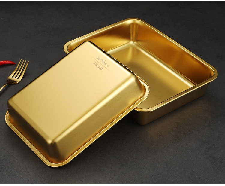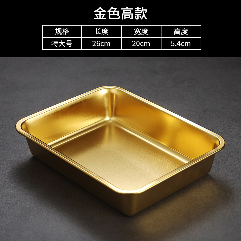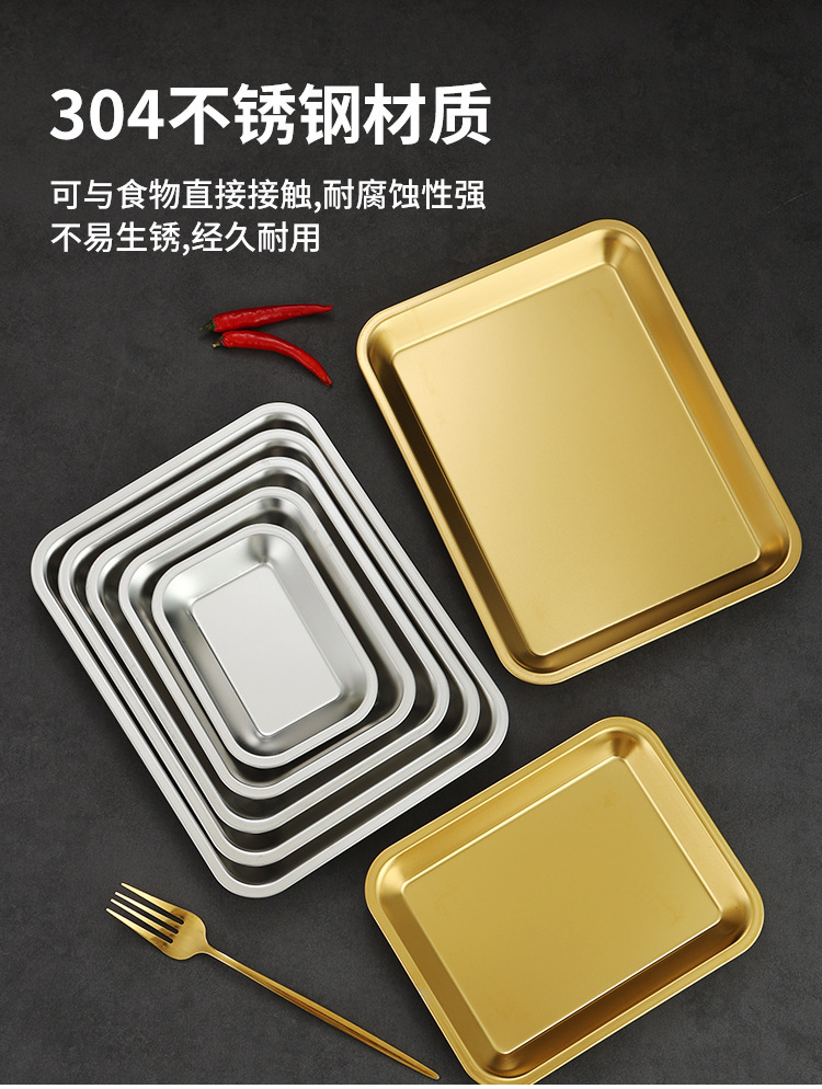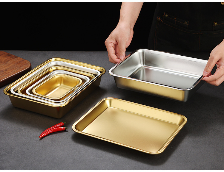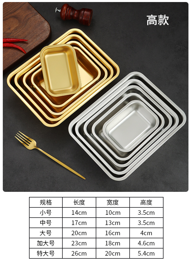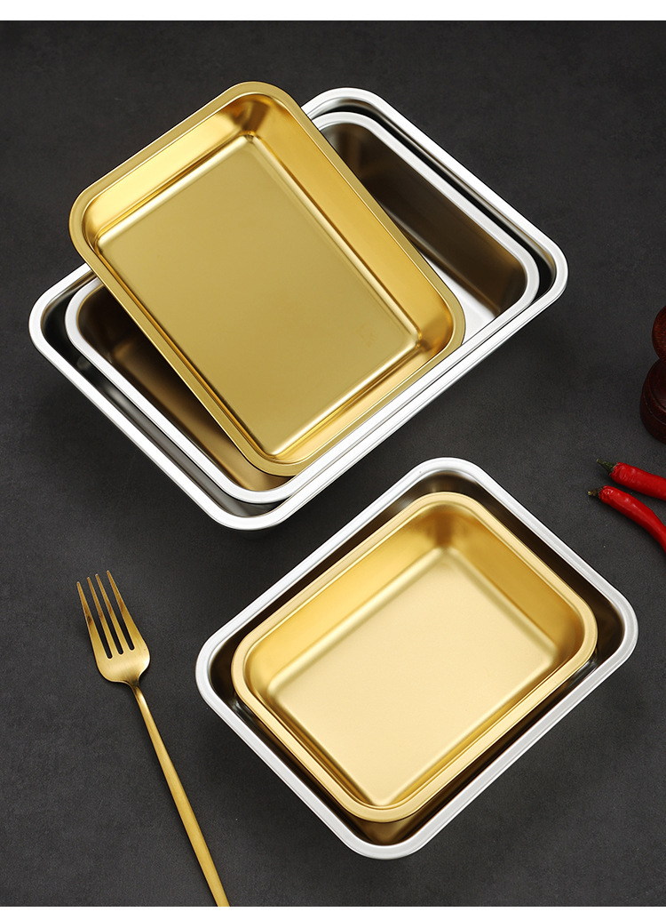 한국식 스테인리스 일본식 사각 접시 금색 평평한 트레이 오븐용 얕은 접시 바베큐 접시 간식 접시 레스토랑용 과자 접시