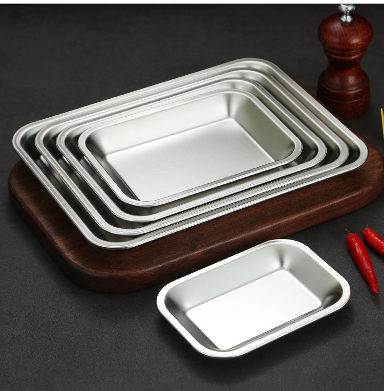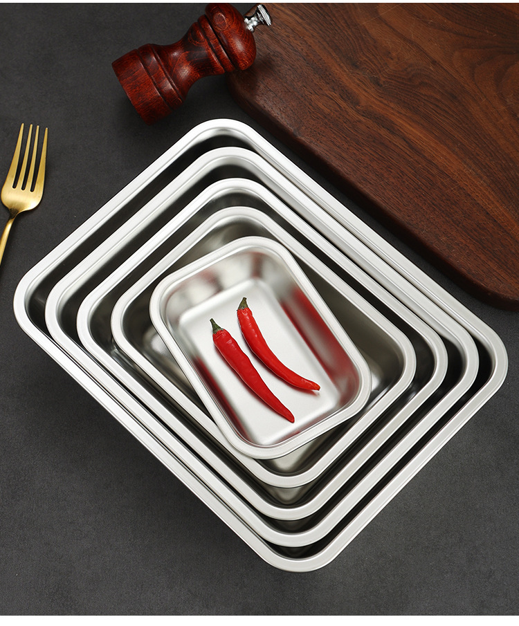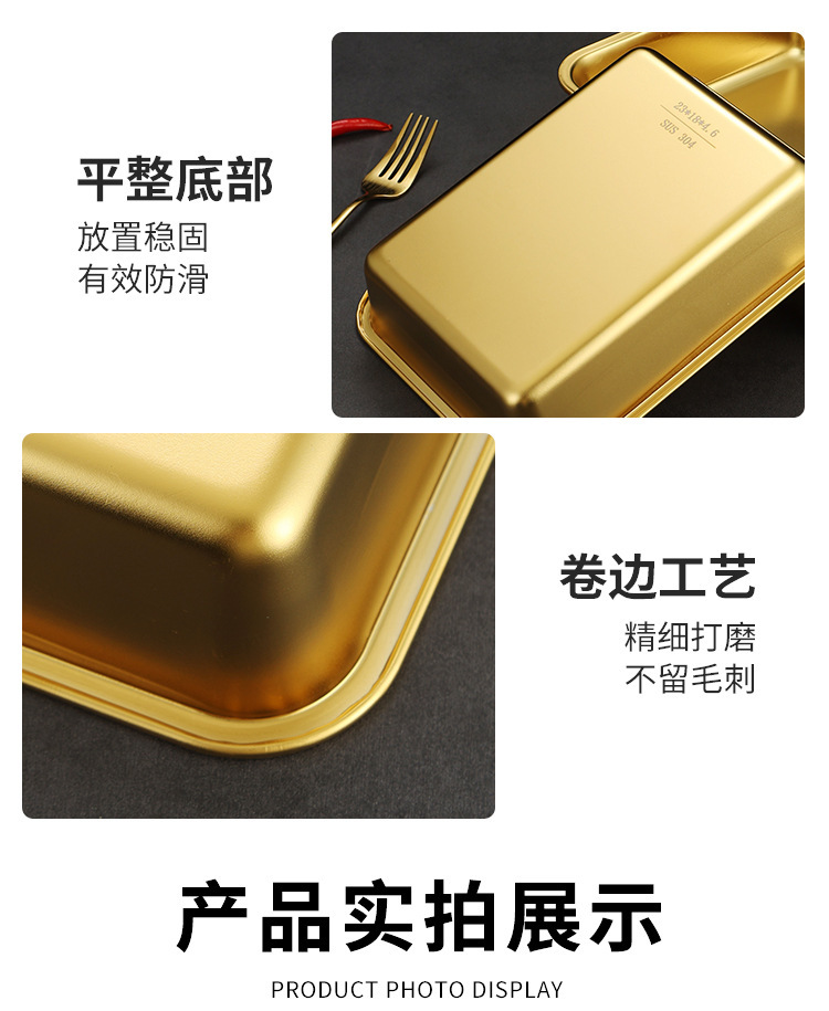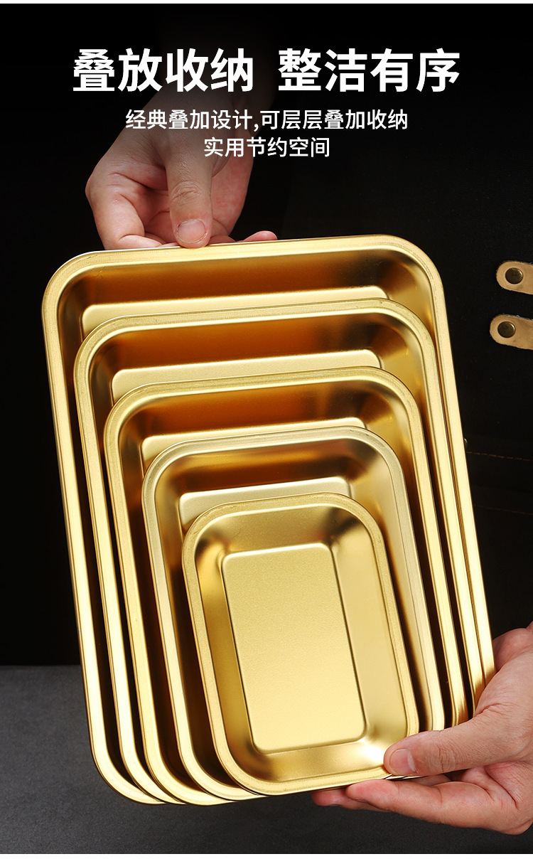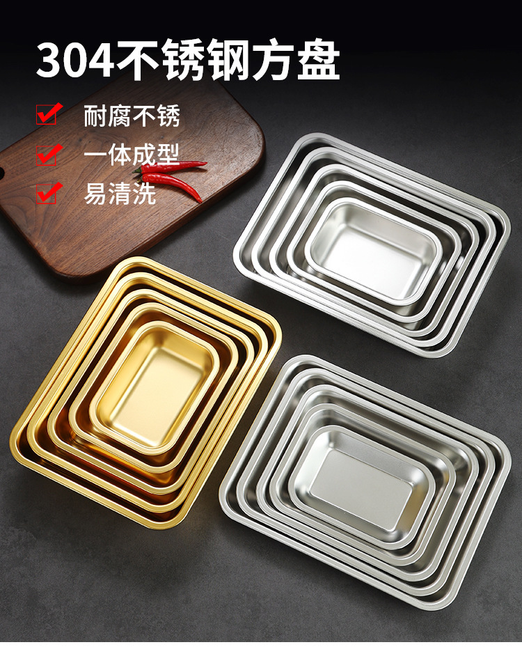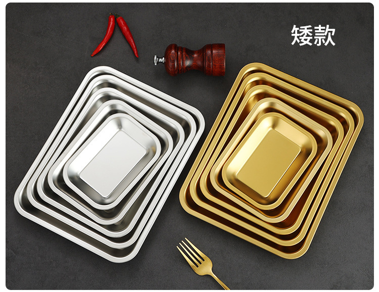 한국식 스테인리스 일본식 사각 접시 금색 평평한 트레이 오븐용 얕은 접시 바베큐 접시 간식 접시 레스토랑용 과자 접시