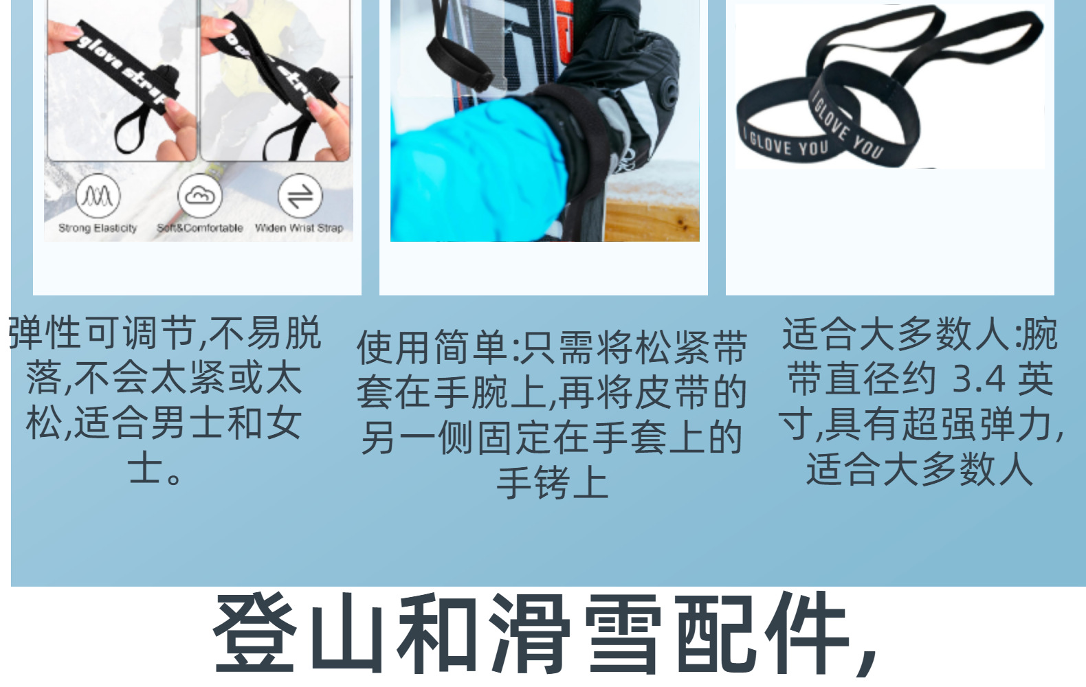 아마존 블랙 1피스 스포츠 장갑 탄력있는 스키 장갑 벨트 걸이형 스키 스노보드 야외용