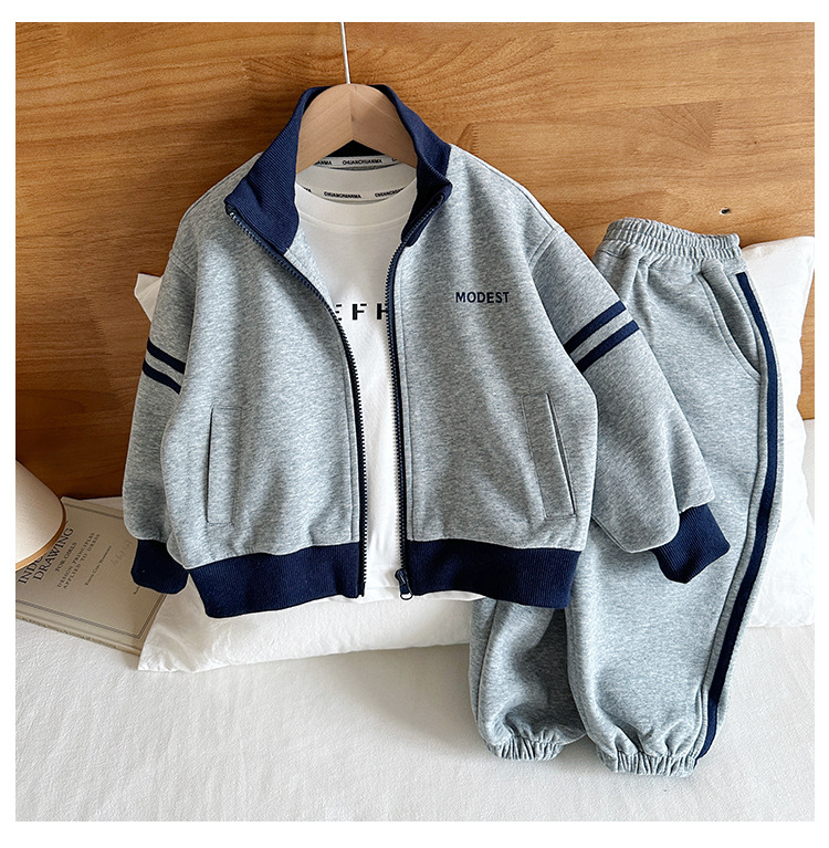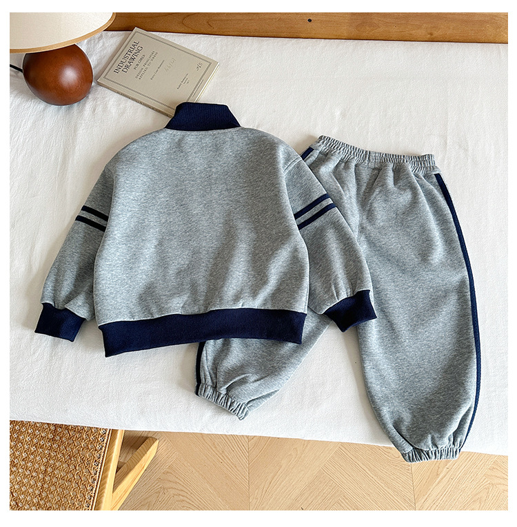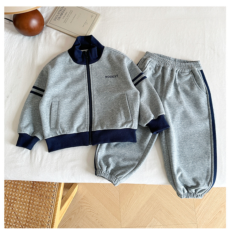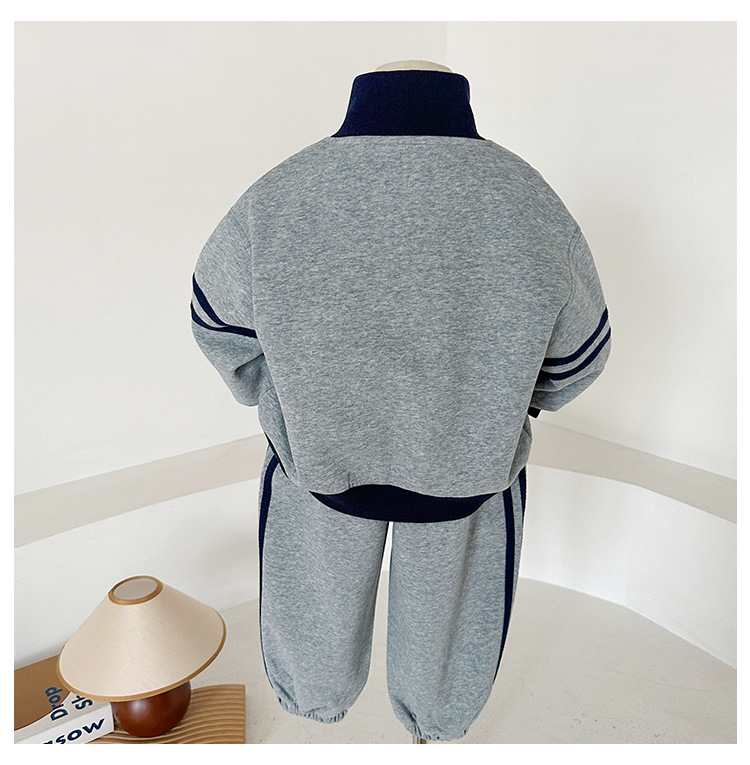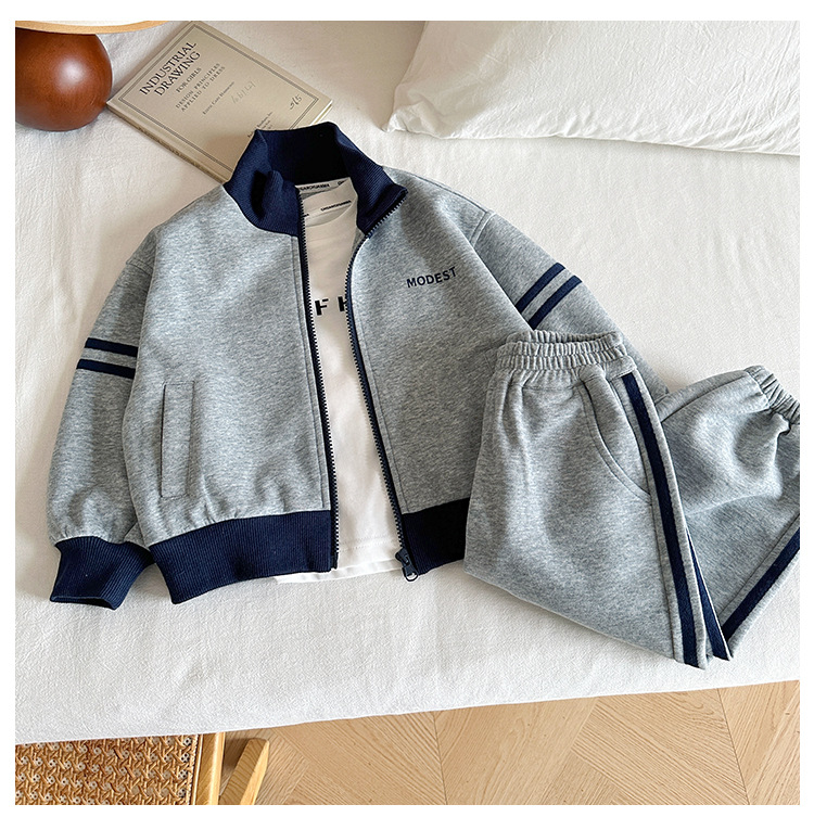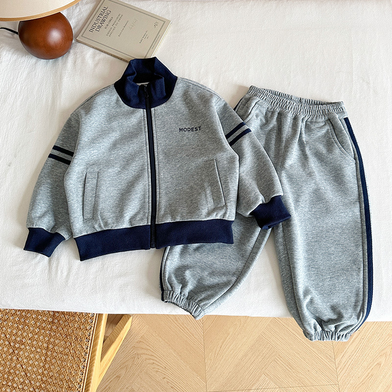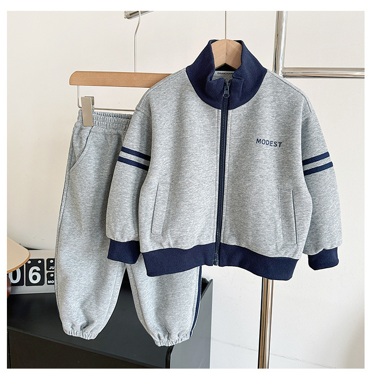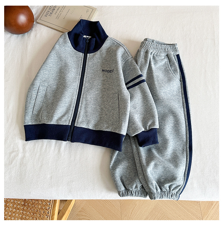 윈드 밸리 2024 가을 뉴 아동복 한국식 콘트라스트 컬러 스포츠 세트 그레이 투피스 패션 세트 소년 소녀스토어 가기
