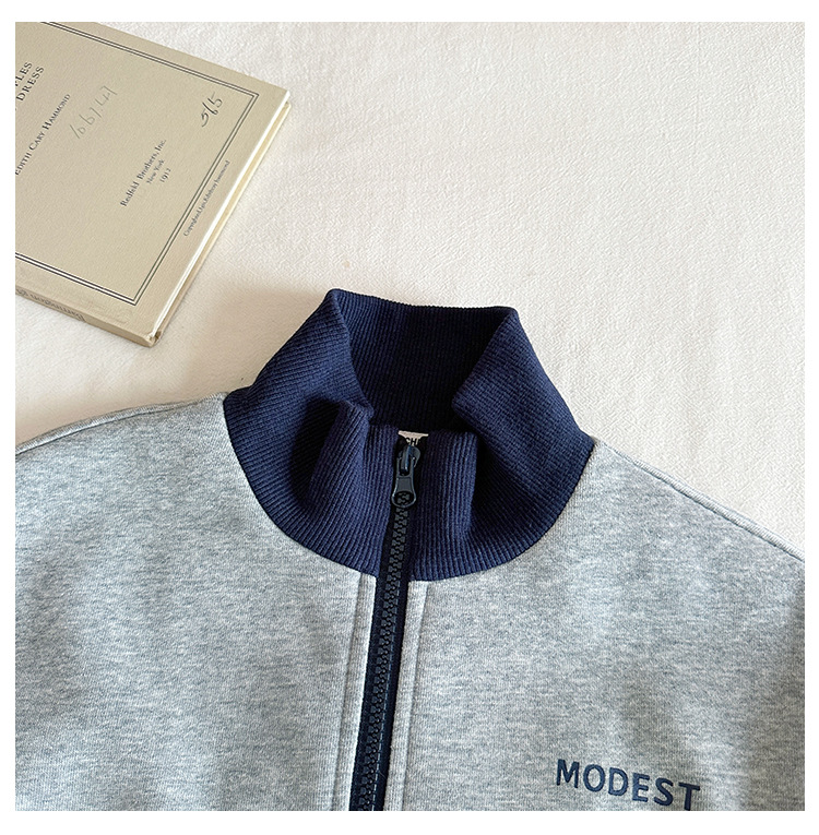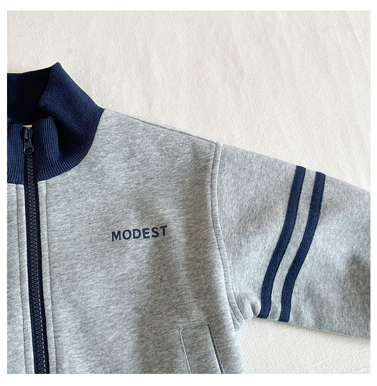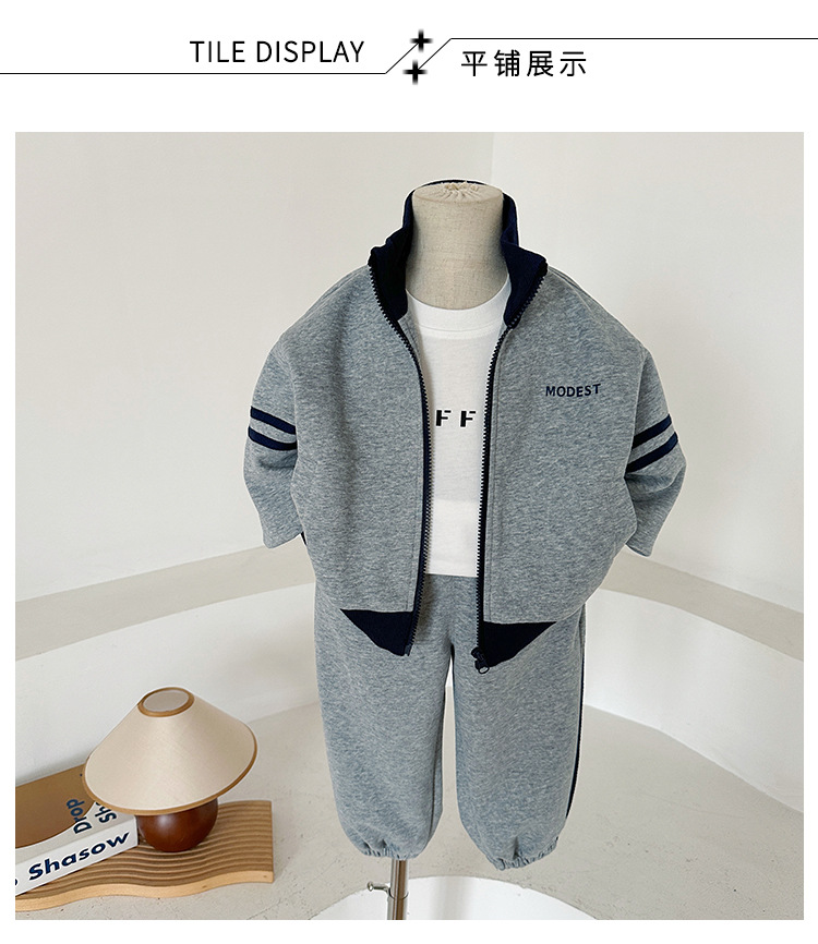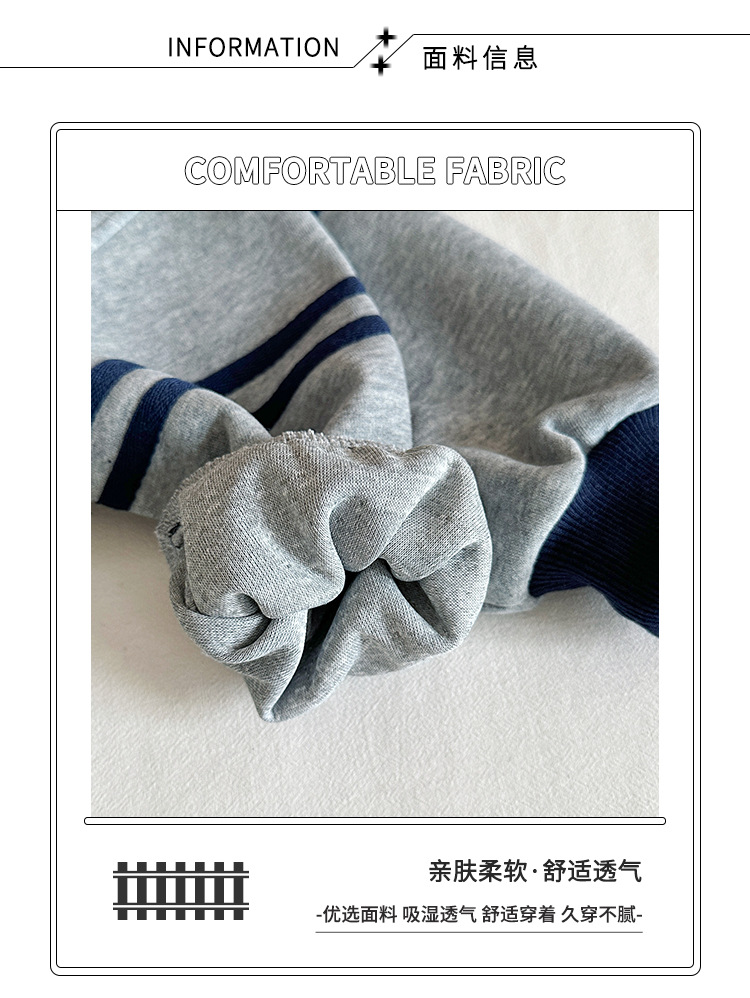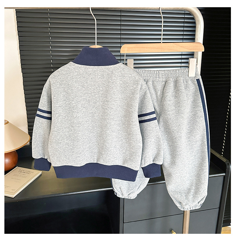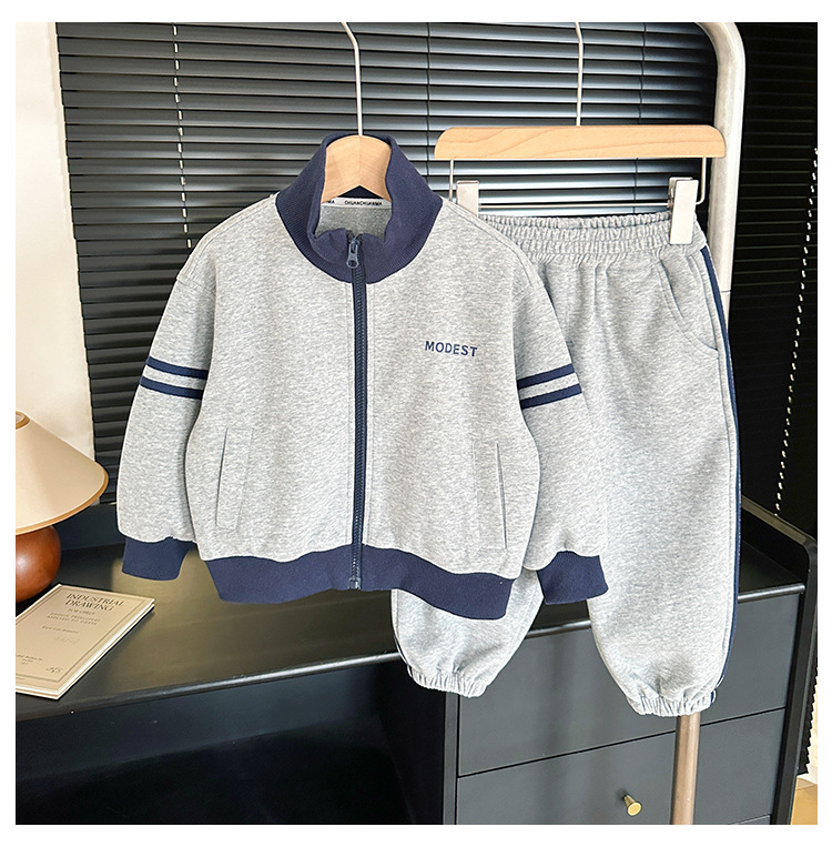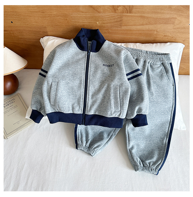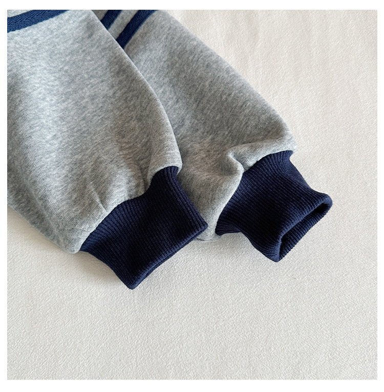 윈드 밸리 2024 가을 뉴 아동복 한국식 콘트라스트 컬러 스포츠 세트 그레이 투피스 패션 세트 소년 소녀스토어 가기